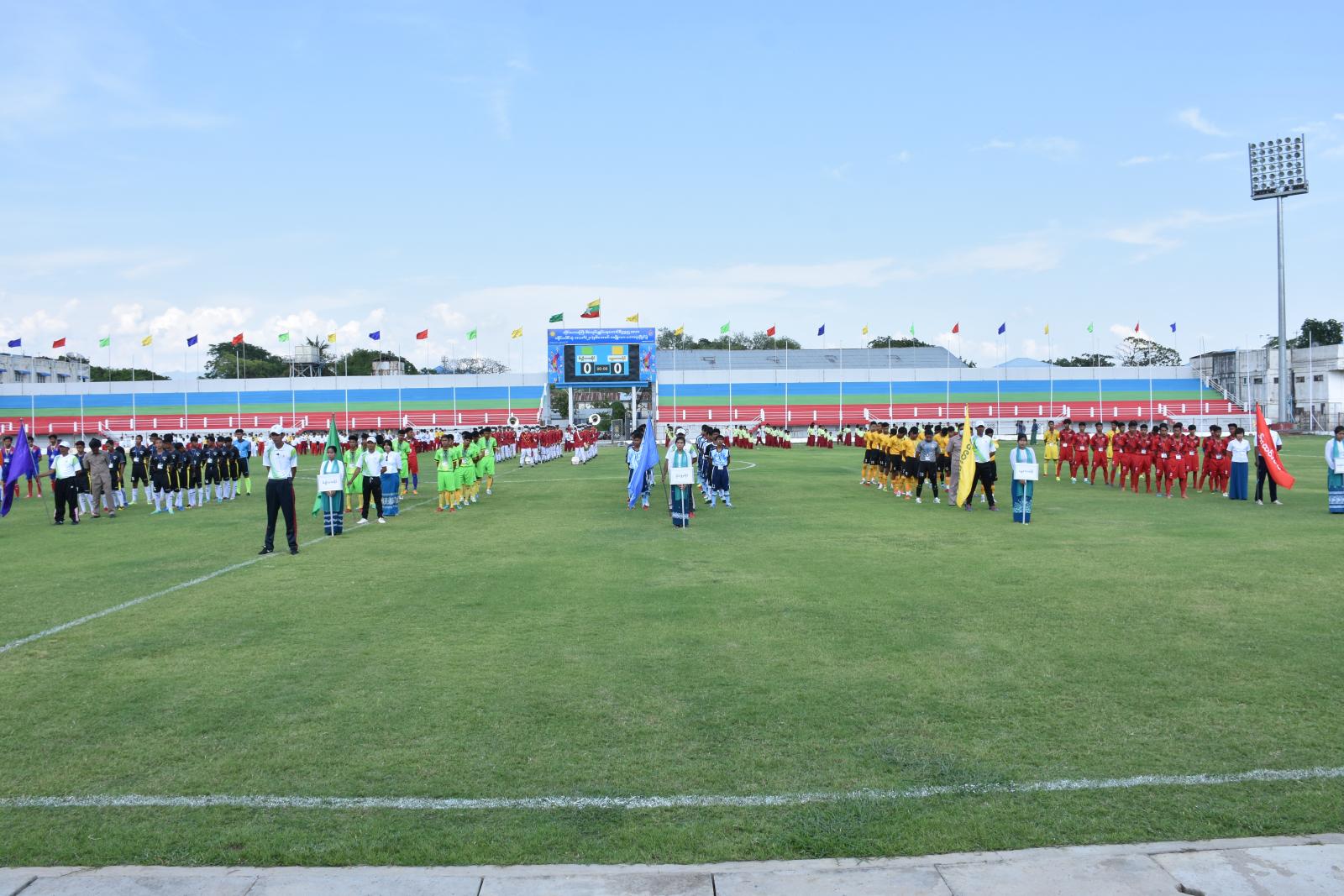 ၂၀၂၁-ခုနှစ် မန္တလေးတိုင်းဒေသကြီးစီမံအုပ်ချုပ်ရေးကောင်စီဥက္ကဋ္ဌဖလား ခရိုင်ပေါင်းစုံ အသက် (၂၁) နှစ်အောက် (အမျိုးသား)ဘောလုံးပြိုင်ပွဲ ဖွင့်ပွဲအခမ်းအနားကို ယမန်နေ့ ညနေ ၃နာရီက ချမ်းအေးသာစံ မြို့နယ်ရှိ ဗထူးအားကစားကွင်းတွင် ကျင်းပသည်။