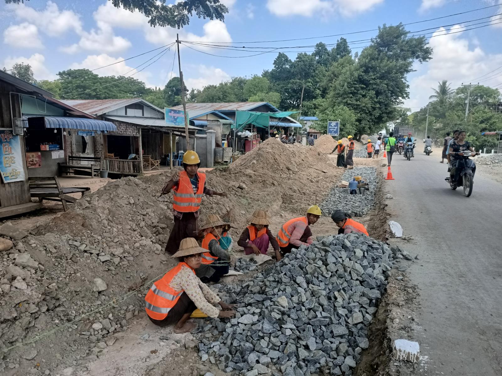 အဆိုပါ လမ်းပိုင်းခင်းခြင်းလုပ်ငန်းအတွက် တိုင်းဒေသကြီးရန်ပုံငွေဖြင့် ၁ မိုင် ၆ ဖာလုံအတွက် ၁၈ပေ အကျယ် ကတ္တာရာလမ်းချဲ့ခြင်းအတွက် ကုန်ကျမှု ၂၃၃ သန်း၊ ၆ ဖာလုံအတွက် ၃၄ ပေအကျယ် မြေသား တာဘောင်ဖို့ခြင်း အတွက် ကုန်ကျမှု ၄၇ ဒသမ ၉၁၀ သန်း အကုန်ကျခံကာ ဆောင်ရွက်လျက်ရှိကြောင်း မြို့နယ်လမ်းဦးစီးဌာန ဦးစီးမှူးထံမှ သိရသည်။