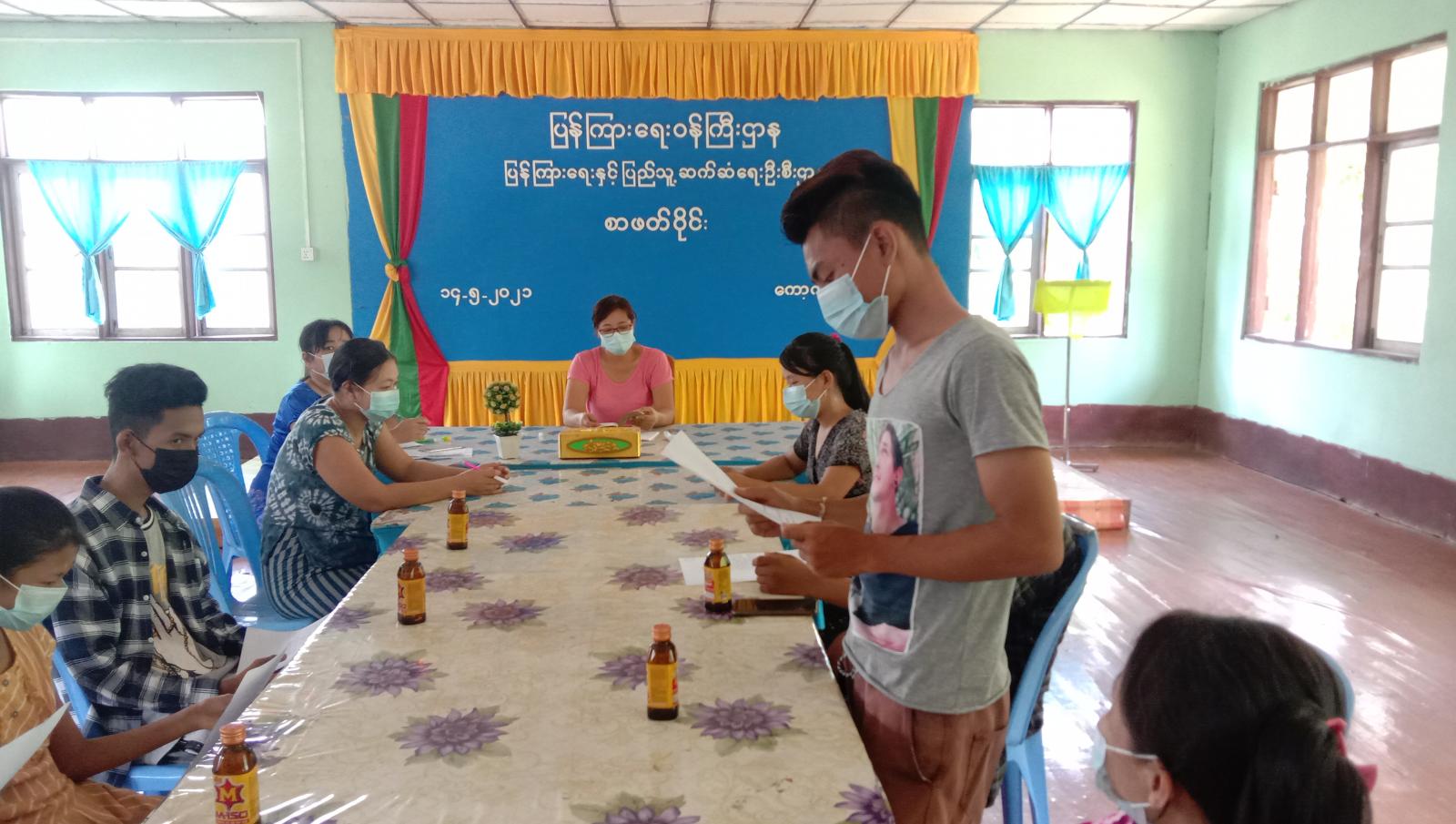 ရှေးဦးစွာ စာဖတ်ဝိုင်းတွင် ပြန်ကြားရေးနှင့်ပြည်သူ့ဆက်ဆံရေးဦးစီးဌာန၊ ခရိုင်ဦးစီးအရာရှိ ဒေါ်လှလှနွယ်က စာဖတ် ဝိုင်းကျင်းပပြုလုပ်ရခြင်း၏ ရည်ရွယ်ချက်များကို ရှင်းလင်းပြောကြားသည်။ ထို့နောက်(Youth Club) အဖွဲ့ဝင် မောင်တိမ်ယံက မိဘနှင့် ဥယျာဉ်မှူး၊ မိဘ၏ ဆန္ဒနှင့် ကလေး သဘာဝအကြောင်းနှင့် (Youth Club ) အဖွဲ့ဝင် မောင်သဲပိုတို့က ကျောင်းနေပျော်၍ စာတော်ပါစေစသည့် အကြောင်းအရာ အသေးစိတ်ကို ရှင်း လင်း ဆွေးနွေးခဲ့သည်။