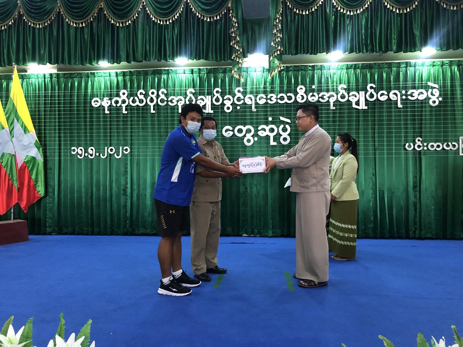 အခမ်းအနားတွင် ဓနုကိုယ်ပိုင်အုပ်ချုပ်ခွင့်ရဒေသ ပင်းတယမြို့ အားကစားနှင့်ကာယ ပညာဦးစီးဌာနမှ လက်ထောက်ညွှန်ကြားရေးမှူး ဦးဇော်မိုးဇော်မှ ပြိုင်ပွဲဝင်ရန်အတွက် ကြိုတင်ပြင်ဆင်ထားရှိမှု လူရွေးချယ်ထားရှိမှုနှင့် လေ့ကျင့်နေမှုများကို ရှင်းလင်းတင်ပြခဲ့ပြီးနောက် ဓနုကိုယ်ပိုင်အုပ်ချုပ်ခွင့် ရဒေသ စီမံအုပ်ချုပ်ရေးအဖွဲ့ဥက္ကဌ ဦးအာကာလင်းမှ ပြိုင်ပွဲသို့ သွားရောက် ယှဉ်ပြိုင်ရာတွင် သန့်ရှင်းစွာ ယှဉ်ပြိုင်၍ ဒေသဂုဏ်သိက္ခာမြှင့်တင်ရန် မှာကြားခဲ့ပြီး ဘောလုံးအားကစားပြိုင်ပွဲသို့ သွားရောက် ယှဉ်ပြိုင်မည့် ဓနုကိုယ်ပိုင်အုပ်ချုပ်ခွင့်ရဒေသ အမျိုးသားဘောလုံးအသင်း (U-21) အား ဂုဏ်ပြု ထောက်ပံ့ငွေပေးအပ်ခဲ့သည်။