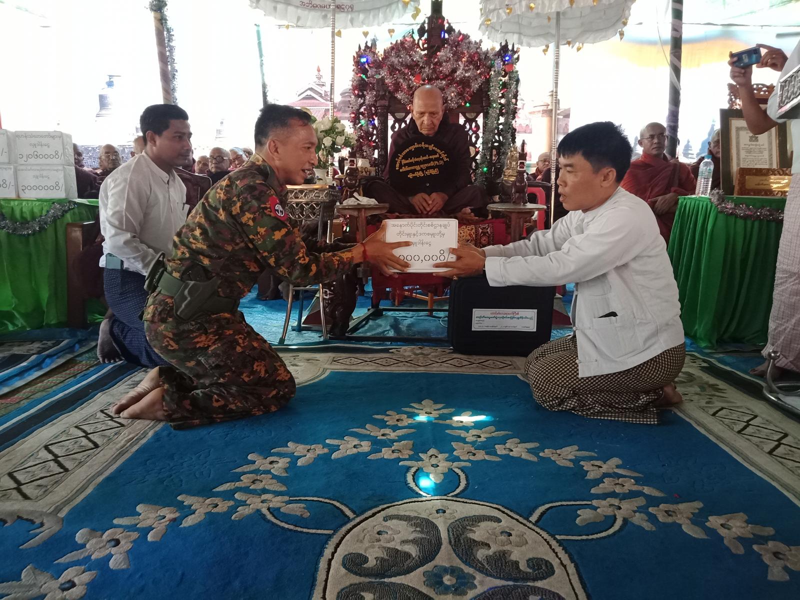 ဆက်လက်၍ ဂုဏ်ပြုပူဇော်ပွဲအတွက် ရခိုင်ပြည်နယ် စီမံအုပ်ချုပ်ရေးကောင်စီမှ လှူဒါန်းငွေကျပ် သိန်း(၅၀)၊ အနောက်ပိုင်းတိုင်းစစ်ဌာနချုပ်တိုင်းမှူးနှင့် ဒကစမှူးတို့မှ လှူဒါန်းငွေကျပ်(၁၀)သိန်း၊ ခရိုင် အဆင့် ဌာနဆိုင်ရာများမှ လှူဒါန်းငွေကျပ်(၁၂၄၅၀၀၀)ကျပ်၊ မြို့နယ်အဆင့်ဌာနဆိုင်ရာများမှ လှူဒါန်းငွေ (၁၂၆၀၀၀၀)ကျပ်၊ ရဟန်းသံဃာတော်များမှ လှူဒါန်းငွေ (၁၂၀၆၀၀၀၀)ကျပ်၊ သျှစ်သောင်းဘုရားဂေါပက အဖွဲ့မှ လှူဒါန်းငွေ (၅၂၃၁၀၀)ကျပ်နှင့်အောင်မင်္ဂလာရပ်ကွက် တကာ၊တကာမများမှ လှူဒါန်းငွေကျပ် သိန်း (၃၀)အား လှူဒါန်းကြသည်။ ယင်းနောက် စစ်တွေမြို့၊ ဓမ္မသုခကျောင်းတိုက် ပဓါနနာယက၊ ပြည်နယ် သံဃ နာယကအဖွဲ့ ဥက္ကဋ္ဌ၊ အဂ္ဂမဟာသဒ္ဓမ္မဇောတိကဓဇ၊ အဂ္ဂမဟာပဏ္ဍိတ ဘဒ္ဒန္တသောမထံမှ ရေစက်သွန်းချ အနုမောဒနာတရားနာကြားခဲ့ကြပြီး အခမ်းအနားကို ဗုဒ္ဓသာသနံစိရံတိဌာတု သုံးကြိမ် ရွတ်ဆို၍ အောင်မြင်စွာ ရုပ်သိမ်းခဲ့ကြောင်း သိရှိရသည်။