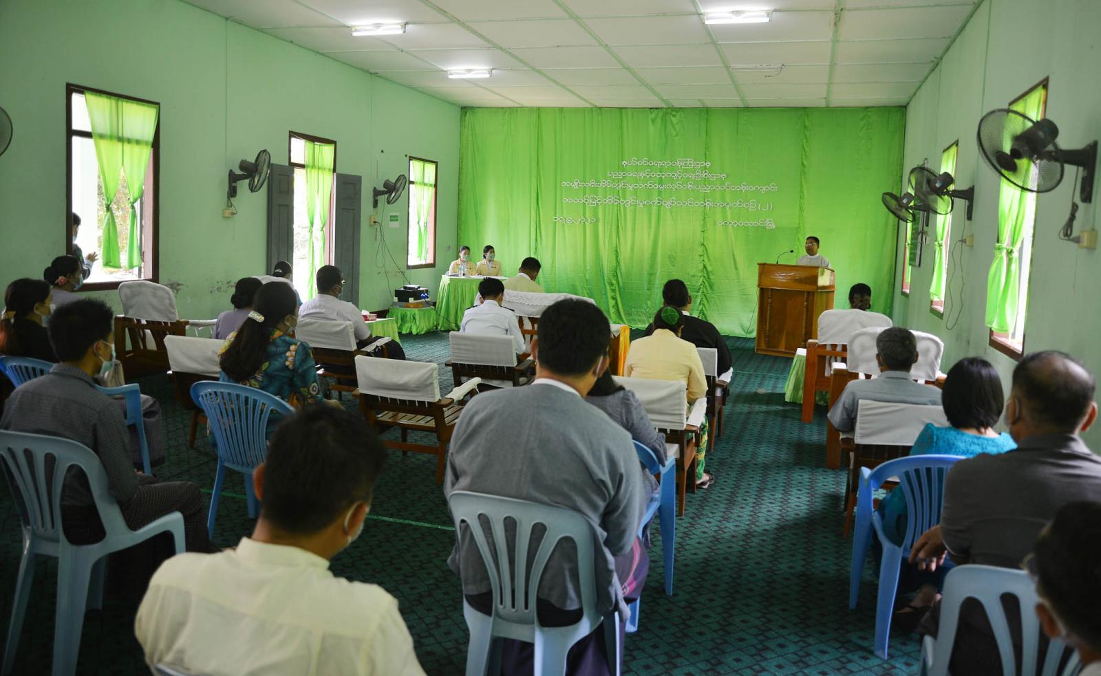 နယ်စပ်ရေးရာဝန်ကြီးဌာန၊ ပညာရေးနှင့်လေ့ကျင့်ရေး ဦးစီးဌာန၊ ကော့သောင်း မြို့၊ အမျိုးသမီးအိမ်တွင်းမှု သက်မွေးပညာ သင်တန်းကျောင်း၊ အဆင့်မြင့် အိမ်တွင်းမှု စက်ချုပ်သင်တန်း အမှတ်စဉ်(၂) သင်တန်းဖွင့်ပွဲ အခမ်းအနားကို ယနေ့ နံနက်(၈)နာရီက သင်တန်းကျောင်းခန်းမတွင် ကျင်းပပြုလုပ်ရာ ကော့သောင်းခရိုင်၊ ဒုတိယခရိုင် အုပ်ချုပ်ရေးမှူး ဦးမြဝင်း တက်ရောက် သင်တန်းဖွင့်အမှာစကား ပြောကြားသည်။