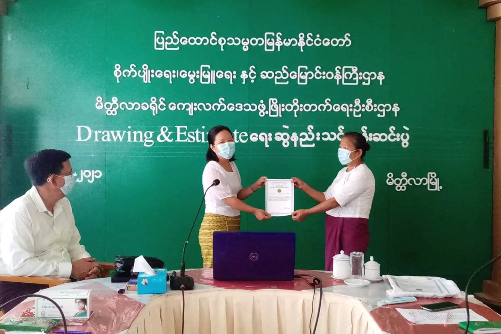 စိုက်ပျိုးရေး၊ မွေးမြူရေးနှင့်ဆည်မြောင်းဝန်ကြီးဌာန၊ မိတ္ထီလာခရိုင် ကျေးလက်ဒေသ ဖွံ့ဖြိုးတိုးတက်ရေးဦးစီးဌာနမှ ကျေးလက်ဒေသဖွံ့ဖြိုးတိုးတက်ရေးအတွက် အခြေခံ အဆောက်အအုံများ လျားထားဆောင်ရွက်ရာတွင် မြေပြင်အနေအထားအပေါ်မူတည်၍ လုပ်ငန်းဒီဇိုင်းပုံများ တိကျပြည့်စုံစွာ ရေးဆွဲလာနိုင်ပြီး ခန့်မှန်းခြေတွက်ချက်မှုများ ဆောင်ရွက်လာနိုင်ရန်အတွက် ၂၀၂၀-၂၀၂၂ ဘဏ္ဍာရေးနှစ် တတိယ(၃)လပတ်တွင် နိုင်ငံတော် ထောက်ပံ့ရန်ပုံငွေဖြင့် စွမ်းဆောင်ရည်မြှင့်တင်ရေးအတွက် Drawing and Estimate သင်တန်းအား မိတ္ထီလာခရိုင်နှင့် ခရိုင်ကွပ်ကဲမှုအောက်ရှိ (မိတ္ထီလာ၊ မလှိုင်၊ ဝမ်းတွင်း၊ သာစည်)မြို့နယ်များရှိ အင်ဂျင်နီယာဝန်းထမ်း (၁၅)ဦးအား မေလ ၃ ရက်နေ့မှ ၁၇ ရက်နေ့အထိ ကိုဗစ်-၁၉ ရောဂါ ကာကွယ်ရေးလမ်းညွှန်ချက်နှင့်အညီ virtual စနစ်ဖြင့် Two Stroeyed RCC Building ၊ Culvert ၊ Causeway ၊ Bridge ၊ Road ၊ Well စသည့်ဘာသာရပ်များကို သင်ကြားခဲ့ကြောင်း သိရသည်။
