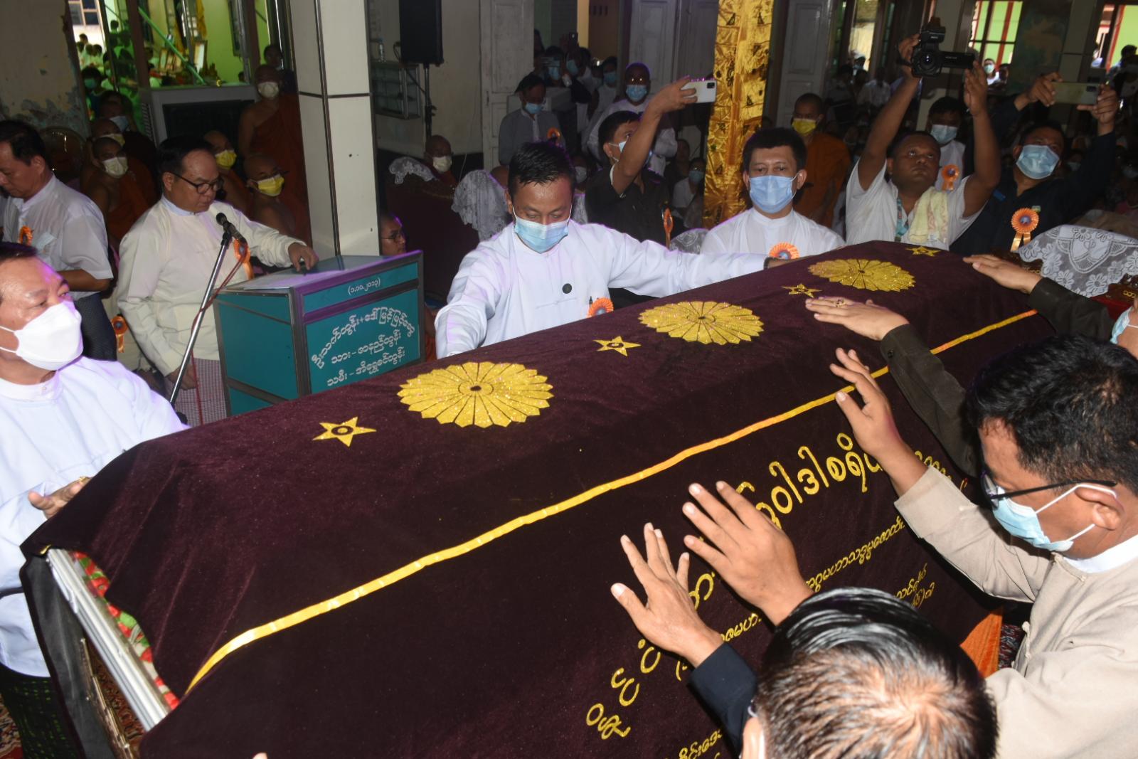 ထို့နောက် ဆရာတော်၊ သံဃာတော်များအား လှူဖွယ်ဝတ္ထုများ ဆက်ကပ်လှူဒါန်းကြသည်။ ဆက်လက်၍ စစ်ကိုင်းဆရာတော်ကြီး၏ ဥတုဇရုပ်ကလာပ်တော်ကို တိုင်းဒေသကြီးစီမံအုပ်ချုပ်ရေး ကောင်စီဥက္ကဋ္ဌနှင့် ကောင်စီဝင်များက စိန်ကတ္တီပါ လွှမ်းခြုံပူဇော်ကြသည်။