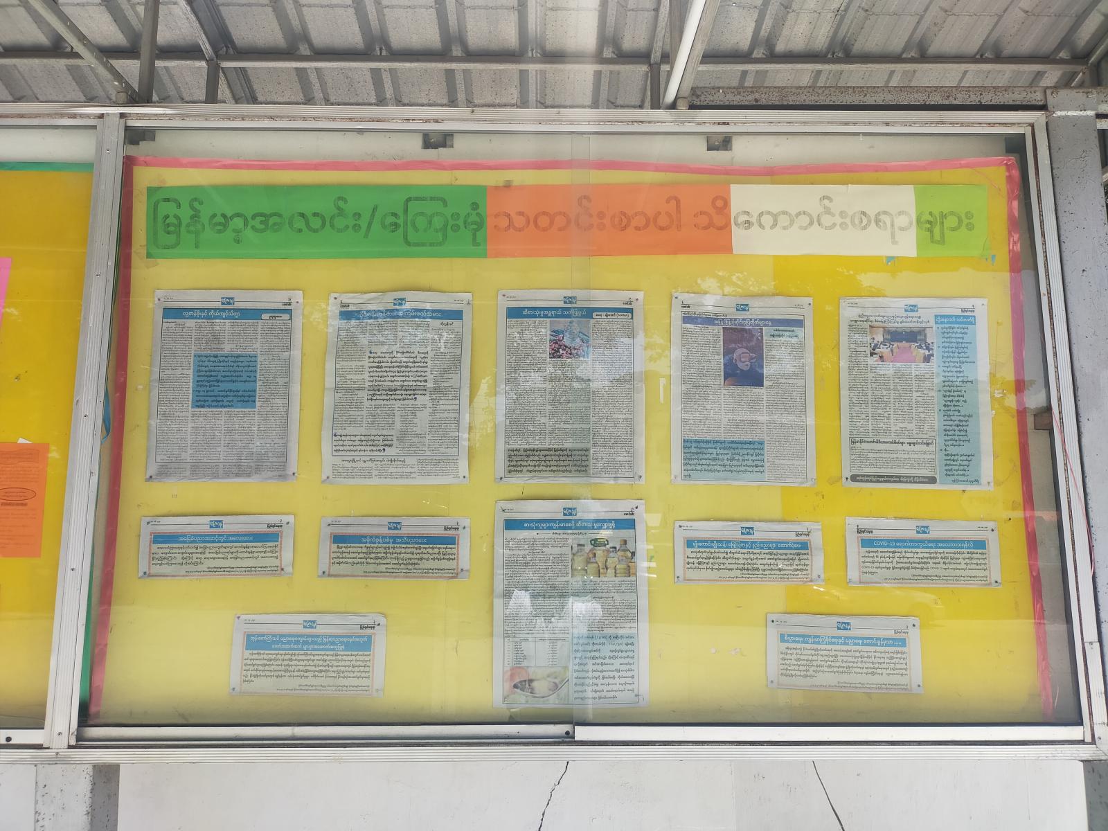 ကရင်ပြည်နယ်၊ မြဝတီခရိုင် ပြန်ကြားရေးနှင့်ပြည်သူ့ဆက်ဆံရေးဦးစီးဌာနသည် မြို့နယ်အတွင်းရှိ ပြည်သူများအား မှန်ကန်သော သတင်းအချက်အလက်များကို အချိန်နှင့်တစ်ပြေးညီ သိရှိစေရန်နှင့် အသိဉာဏ်ပညာများ ဖွံ့ဖြိုးတိုးတက်စေရေးအတွက် ရည်ရွယ်ချက်ဖြင့် ယနေ့နံနက် (၁၀) နာရီ အချိန်က ခရိုင်ပြန်ကြားရေးနှင့်ပြည်သူ့ဆက်ဆံရေးဦးစီးဌာနရုံးရှေ့ရှိ မြေစိုက်နံရံကပ်ပြဘုတ်တွင် အသိပညာပေး နံရံကပ် စာစောင်များ ပြသထားကြောင်း သိရသည်။