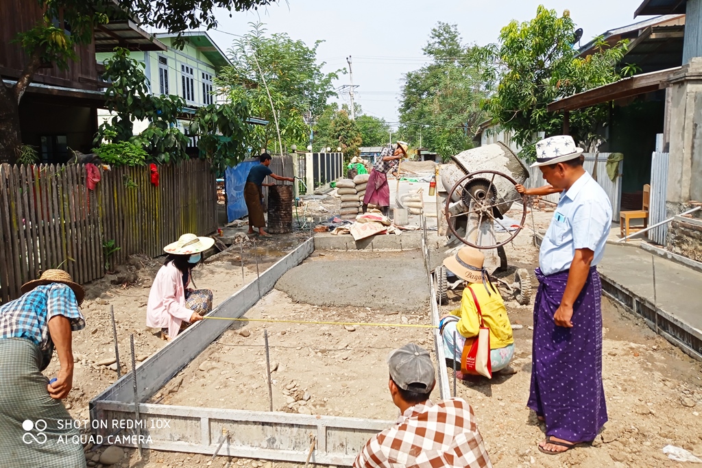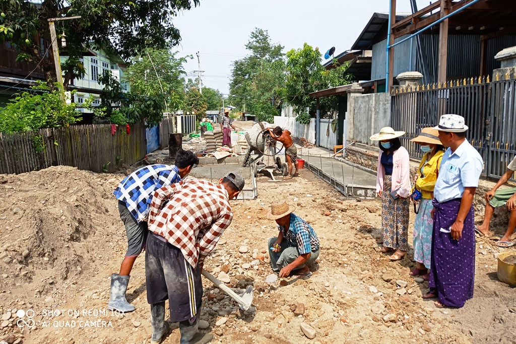 လုပ်ငန်းဆောင်ရွက်နေမှုအား စံချိန်စံညွှန်းမီဖြစ်ရေး နှင့် သတ်မှတ်ကာလတွင် ပြီးစီးနိုင်ရေး မြို့နယ်စည်ပင်သာယာရေးအဖွဲ့ တာဝန်ခံအင်ဂျင်နီယာ ဦးကျော်ကျော်အောင် နှင့်အဖွဲ့က တာဝန်ယူ ဆောင်ရွက်လျက်ရှိပြီး တာဝန်ရှိ သူများ ကွင်းဆင်းကြီးကြပ်လျက်ရှိကြောင်း သိရသည်။