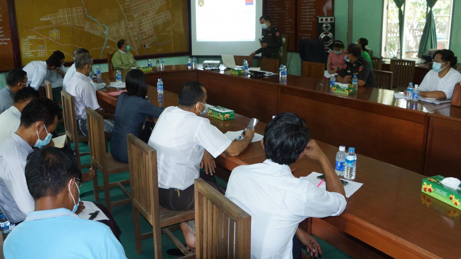 ဆွေးနွေးပွဲသို့ စစ်ကိုင်းခရိုင်စီမံအုပ်ချုပ်ရေးအဖွဲ့ ဥက္ကဌ ဦးဆန်းထွန်းစိန်က အဖွင့်အမှာစကား ဆွေးနွေးပြောကြာပြီး ခရိုင်လူဝင်မှုကြီးကြပ်ရေးနှင့် ပြည်သူ့အင်အားဆိုင်ရာဦးစီးဌာန၊ ခရိုင်ဦးစီးမှူး ဦးမောင်မောင်အေးက နိုင်ငံ တော်စီမံအုပ်ချုပ်ရေးကောင်စီဥက္ကဌ၏ လမ်းညွှန်ချက်နှင့်အညီ တိုင်းရင်း သားများနှင့် ဥပဒေအရ နိုင်ငံသားများအား ပန်းခင်းစီမံချက်ဖြင့် အိမ်ထောင်စု လူဦးရေစာရင်းနှင့် ကိုင် ဆောင်သင့်သော ကတ်တစ်မျိုးမျိုး ထုတ်ပေးရေး လုပ်ငန်းအား အမြန်ပြီးစီးအောင်မြင်ရေးအတွက် စစ်ဆင်ရေးတစ်ရပ်ကဲ့သို့ ဆောင်ရွက်သွားမှာဖြစ်ကြောင်း၊ အကြမ်းဖျဉ်းစီမံချက်အနေဖြင့် လက်ရှိဇာတိ ဒေသတွင် အမြဲတမ်းနေထိုင်၍ အိမ်ထောင်စုလူဦးရေ စာရင်းရှိပြီး ကိုင်ဆောင်လက်မှတ်မရှိသူ၊ လက်ရှိ ဇာတိဒေသတွင် အမြဲတမ်းနေထိုင်၍ အိမ်ထောင်စု လူဦးရေစာရင်းမရှိ ကိုင်ဆောင်လက်မှတ်မရှိသူများ၊ ရွေ့ပြောင်းနေထိုင်သူများအတွက် မူလဒေသတွင် အိမ်ထောင်စုလူဦးရေ စာရင်းရှိသော်လည်း လက်ရှိဒေသတွင် ကိုင်ဆောင်လက်မှတ် မရှိသူများ၊ ရွေ့ပြောင်းနေထိုင်သူများအတွက် မူလဒေသတွင် အိမ်ထောင်စု လူဦးရေစာရင်းနှင့်ကိုင်ဆောင်လက်မှတ်မရှိ၊ လက်ရှိဒေသတွင်လည်း အိမ်ထောင်စုလူဦးရေ စာရင်းနှင့် ကိုင်ဆောင်လက်မှတ်မရှိသူများအား ဆောင်ရွက် ပေးသွားမှာဖြစ်ကြောင်း ခရိုင်အတွင်း စစ်ကိုင်း၊ မြင်းမူ၊ မြောင်မြို့နယ်များတွင် လူဦးရေ(၁၈၈၀၀)ကျော်ခန့် ဆောင်ရွက် ပေးသွားရမှာဖြစ် ကြောင်း၊ စီမံချက်ကာလအနေဖြင့်(၁၈)လကြာ ဆောင်ရွက်ပေးသွားမည်ြဖစ်ကြောင်းစသည်ဖြင့် ရှင်းလင်း ဆွေးနွေးပြောကြားခဲ့သည်။