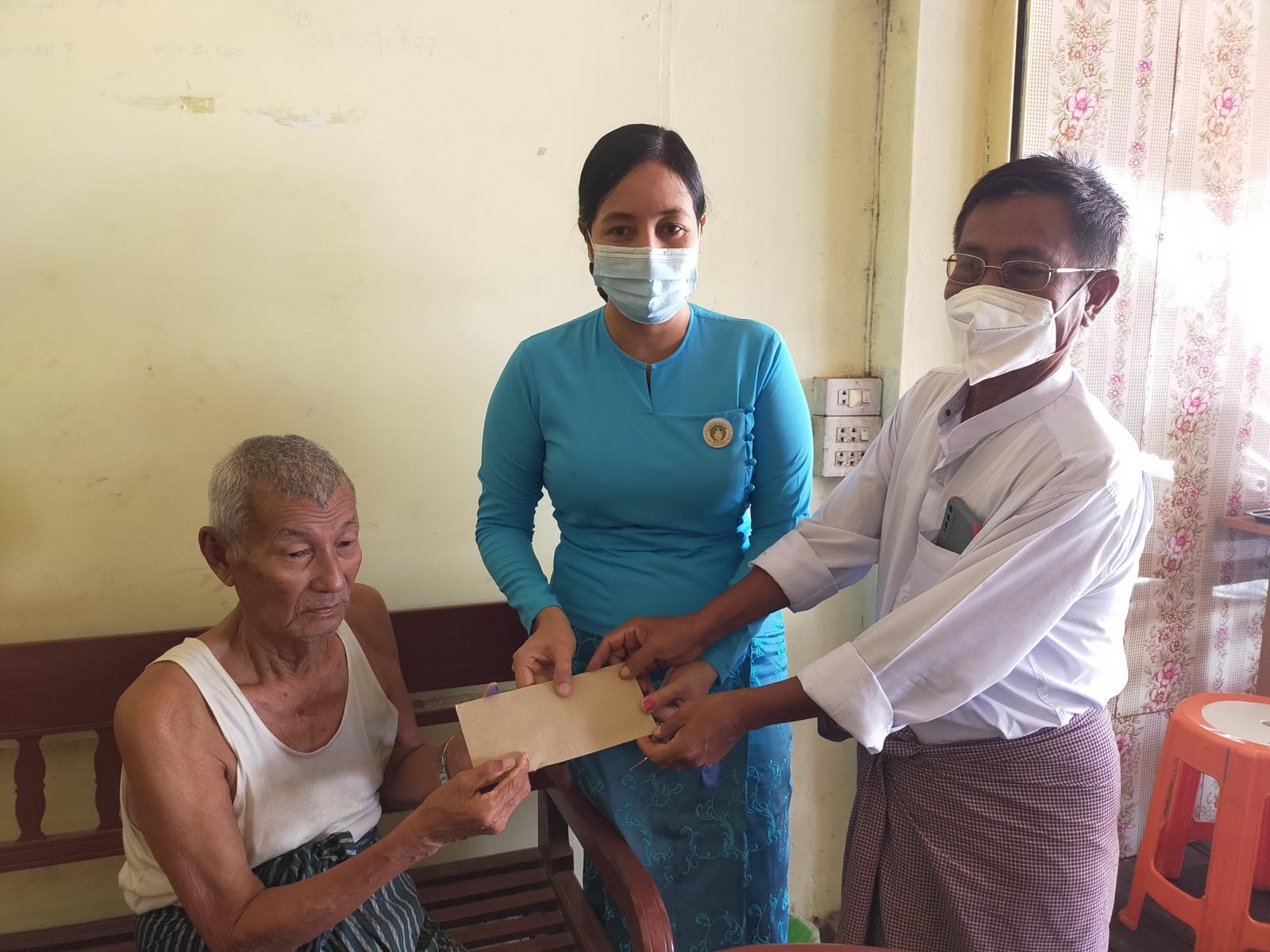 မြဝတီမြို့ အမှတ်(၁) ရပ်ကွက်ရှိ အသက်(၈၅)နှစ်နှင့်အထက်ဘိုးဘွား (၅) ဦးအား လူမှုရေးပင်စင်အဖြစ် (ဇန်နဝါရီ၊ ဖေဖော်ဝါရီ၊ မတ်) သုံးလစာအတွက် တစ်ဦးလျှင် ထောက်ပံ့ငွေကျပ်(၃၀၀၀၀) နှုန်းဖြင့် စုစုပေါင်း ငွေကျပ် (၁၅၀၀၀၀) ကို မြဝတီမြို့ အမှတ် ၁ ရပ်ကွက် အုပ်ချုပ်ရေးမှူး ဦးအောင်သန်းနှင့် မြဝတီခရိုင်အမျိုးသမီးရေးရာအဖွဲ့ဝင် ဒေါ်ကေခိုင်တို့က သက်ကြီးဘိုးဘွားများ လက်ဝယ်အရောက် ထောက်ပံ့ပေးအပ်ခဲ့ကြောင်း သိရသည်။