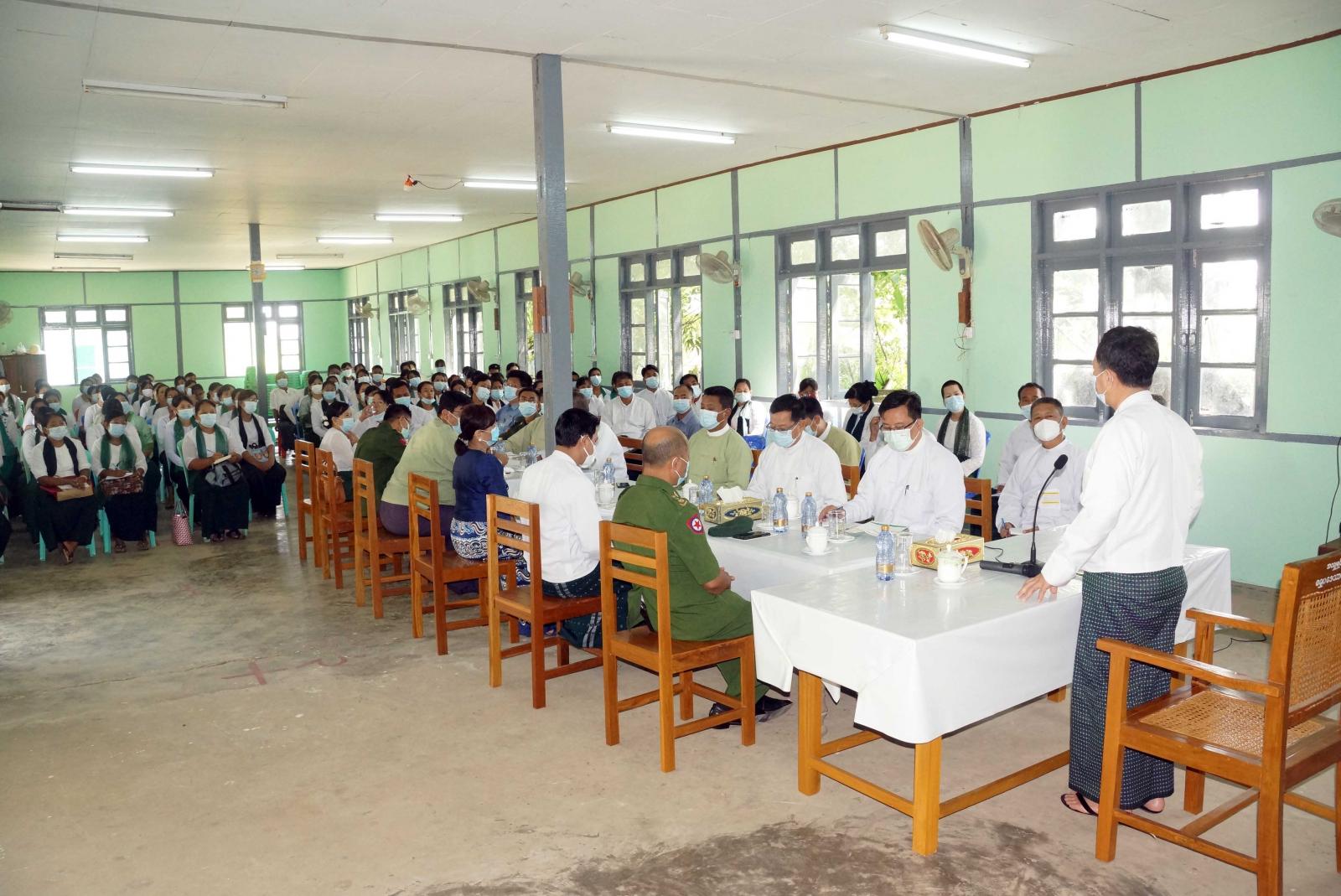 နေပြည်တော်ကောင်စီဥက္ကဋ္ဌက တင်ပြချက်များနှင့်စပ်လျဉ်း၍ ကျောင်းဆရာ ၊ ဆရာမများအနေဖြင့် မိမိနိုင်ငံ ဖွံ့ဖြိုးတိုးတက်စေရေးအတွက် ကျောင်းသား/ကျောင်းသူများကို ပညာများတတ်မြောက်ကျွမ်းကျင်အောင် လေ့ကျင့်သင်ကြားပေးစေလိုကြောင်း၊ ပိုမိုယဉ်ကျေးလိမ္မာပြီး စံပြကျောင်းသား/ကျောင်းသူများ ဖြစ်ပေါ်စေရေး၊ အောင်ချက်ရာခိုင်နှုန်းမြင့်မားရေးနှင့် သင်ကြားရာတွင် ကိုဗစ်-၁၉ စည်းကမ်းများနှင့်အညီ စနစ်တကျလိုက်နာ ဆောင်ရွက်ကြစေလိုကြောင်း၊ ကျောင်းနေအရွယ်ကလေးများကို ကျောင်းအပ်နှံနိုင်ရေး၊ ကျောင်းသား/ ကျောင်းသူများကို အေးချမ်းပျော်ရွှင်စွာ ပညာသင်ကြားနိုင်ရေးနှင့် ကျောင်းများ၏လိုအပ်ချက်များကို သက်ဆိုင် ရာ ဌာနဆိုင်ရာများက ပူးပေါင်းဆောင်ရွက်ပေးစေလိုကြောင်းပြောကြားသည်။