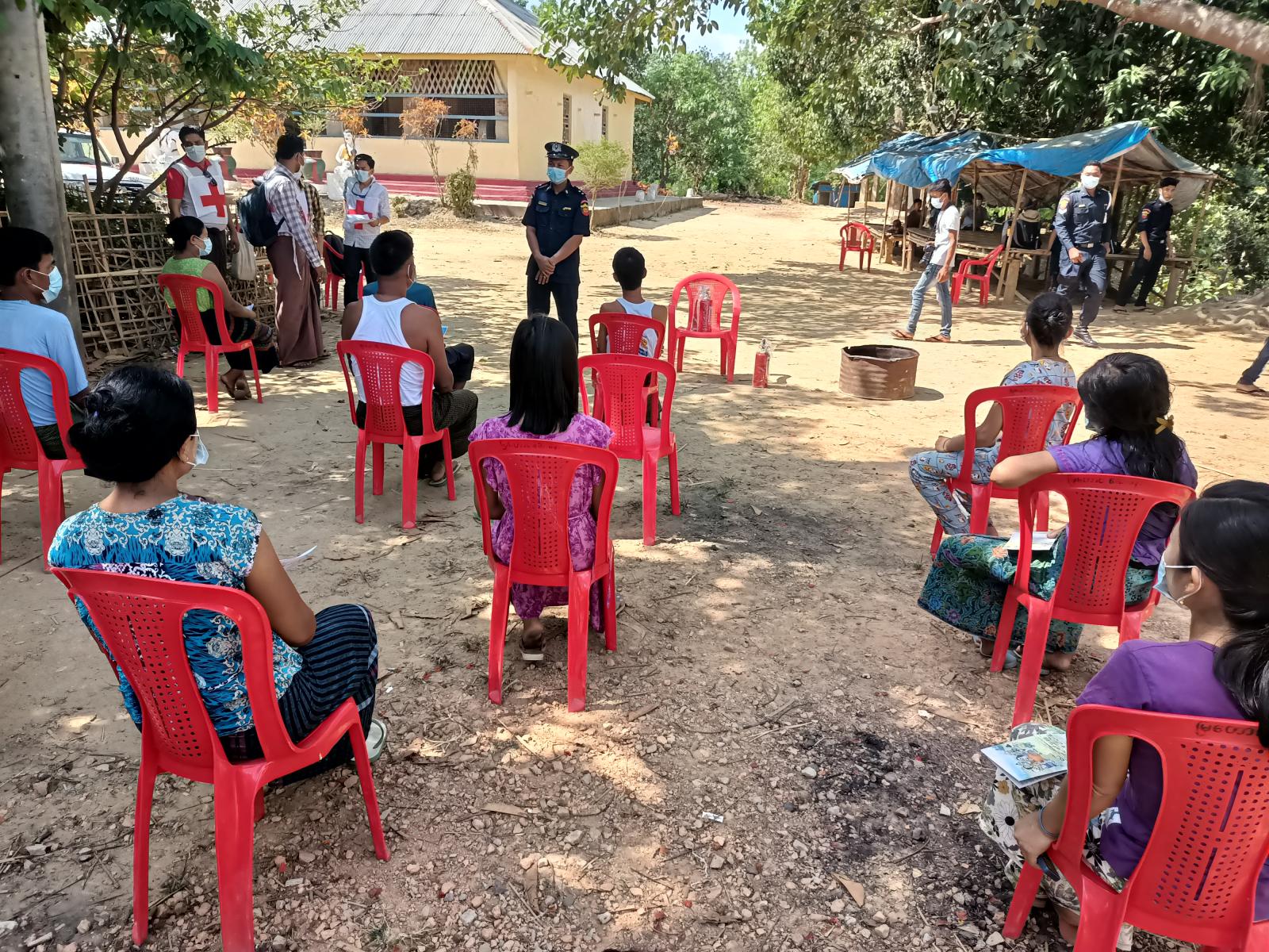 ရှေးဦးစွာ မြို့နယ် ICRC အဖွဲ့မှ ကိုဗစ်-၁၉ဆိုင်ရာအသိပညာပေးခြင်းများကိုဟောပြောခဲ့ကြပြီး မြို့နယ် မီးသတ်ဦးစီးဌာနမှ ဒုမီးသတ်ဦးစီးမှူးဦးအောင်သန်းဝင်းနှင့် မီးသတ်တပ်ဖွဲ့ဝင်များက တိုက်ပွဲ ရှောင်ပြည်သူများအား မီးဘေးအန္တရာယ်ကြိုတင်ကာကွယ်ရေးအသိပညာပေးခြင်း၊ လက်တွေ့မီးငြိမ်း သတ် နည်းများ လေ့ကျင့်သရုပ်ပြသခြင်းများပြုလုပ်ကာတာဝန်ရှိသူများက တိုက်ပွဲရှောင်ကယ်ဆယ်ရေး စခန်း တာဝန်ရှိသူများထံသို့မီးသတ်ဆေးဗူး(၁၃)ဗူးပေးအပ်ကာစခန်းအတွင်းရှိ နေအိမ်များတွင် မီးဘေး ကာကွယ်ရေး စစ်ဆေးအကြံပြုခြင်းများ ဆောင်ရွက်ခဲ့ကြသည်။