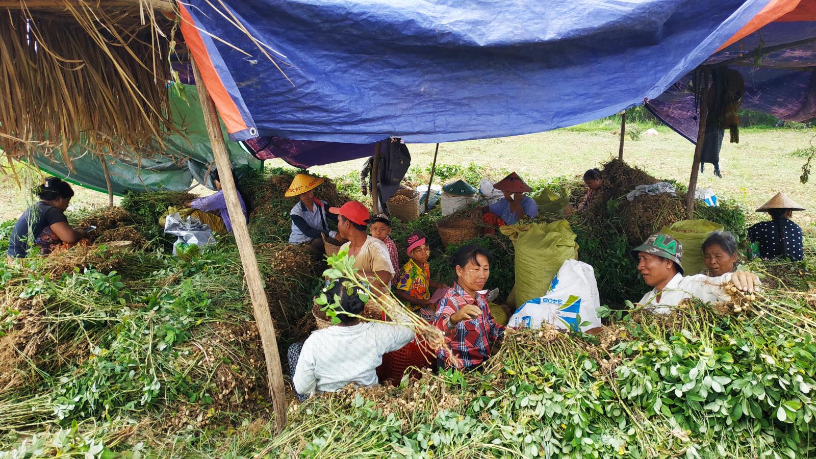 “ မြေပဲဥရင်ဥသလို တစ်ရက်ကိုပျမ်းမျှ လေးတင်း ငါးတင်းရတဲ့အတွက် တစ်ယောက်ကို ငါးထောင် ကျော်ရတယ်၊ တစ်ချို့မိသားစု နှစ်ယောက် သုံးယောက်လုပ်ရင် တစ်ရက်ကို တစ်သောင်း ကျော်ရ တယ်” ဟု မြေပဲအငှားနှတ်သူ တစ်ဦးကပြောသည်။