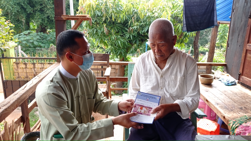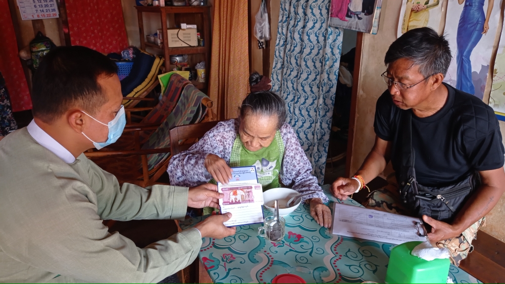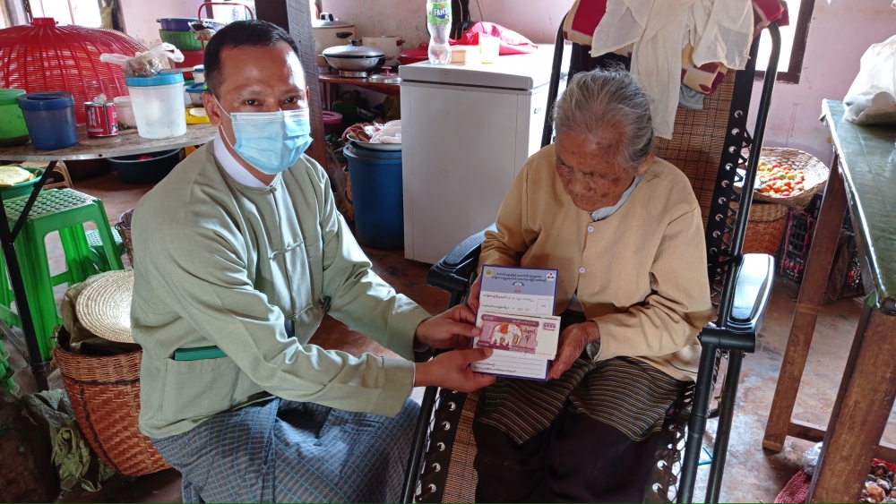 ယင်းသို့ဆောင်ရွက်ရာတွင် မြို့နယ်အထွေထွေ အုပ်ချုပ်ရေးဦးစီးဌာနမှ ဒုတိယမြို့နယ် အုပ်ချုပ်ရေးမှူး ဦးကျော်မျိုးထက်၊ ရပ်ကွက်နှင့်ကျေးရွာအုပ်စုစာရေးဝန်ထမ်းများ၊ လူမှုဝန်ထမ်းဦးစီးဌာနမှ တာဝန်ရှိသူများနှင့် ရပ်ကွက်အုပ်ချုပ်ရေးမှူးတို့က ဥယျာဉ်ရပ်ကွက်နှင့် ပေါ့မိုင်းရပ်ကွက်ရှိ အဘိုးအဘွား(၁၉)ဦးတို့အား ဇန်နဝါရီလ၊ ဖေဖော်ဝါရီလနှင့် မတ်လ သုံးလအတွက် ငွေကျပ် ၃၀၀၀၀ စီကိုအိမ်တိုင်ရာရောက် သွားရောက်ဂါရဝပြု ပေးအပ်ခဲ့ကြသည်။