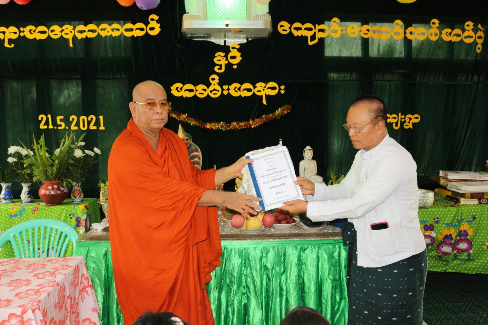 ထို့နောက် ကျောင်းဆောင်သစ်နှင့်ပတ်သက်သည့် စာရွက်စာတမ်းများကို ဆရာတော်က ပညာရေးဌာနသို့ လွဲပြောင်းပေးအပ်ရာ သုံးခွမြို့နယ်ပညာရေးဌာန ဒုတိယမြို့နယ်ပညာရေးမှူး ဦးတင်လှက လက်ခံရယူခဲ့ပြီး ကျေးဇူးတင်စကား ပြန်လည်ပြောကြားခဲ့ကြောင်း သိရသည်။