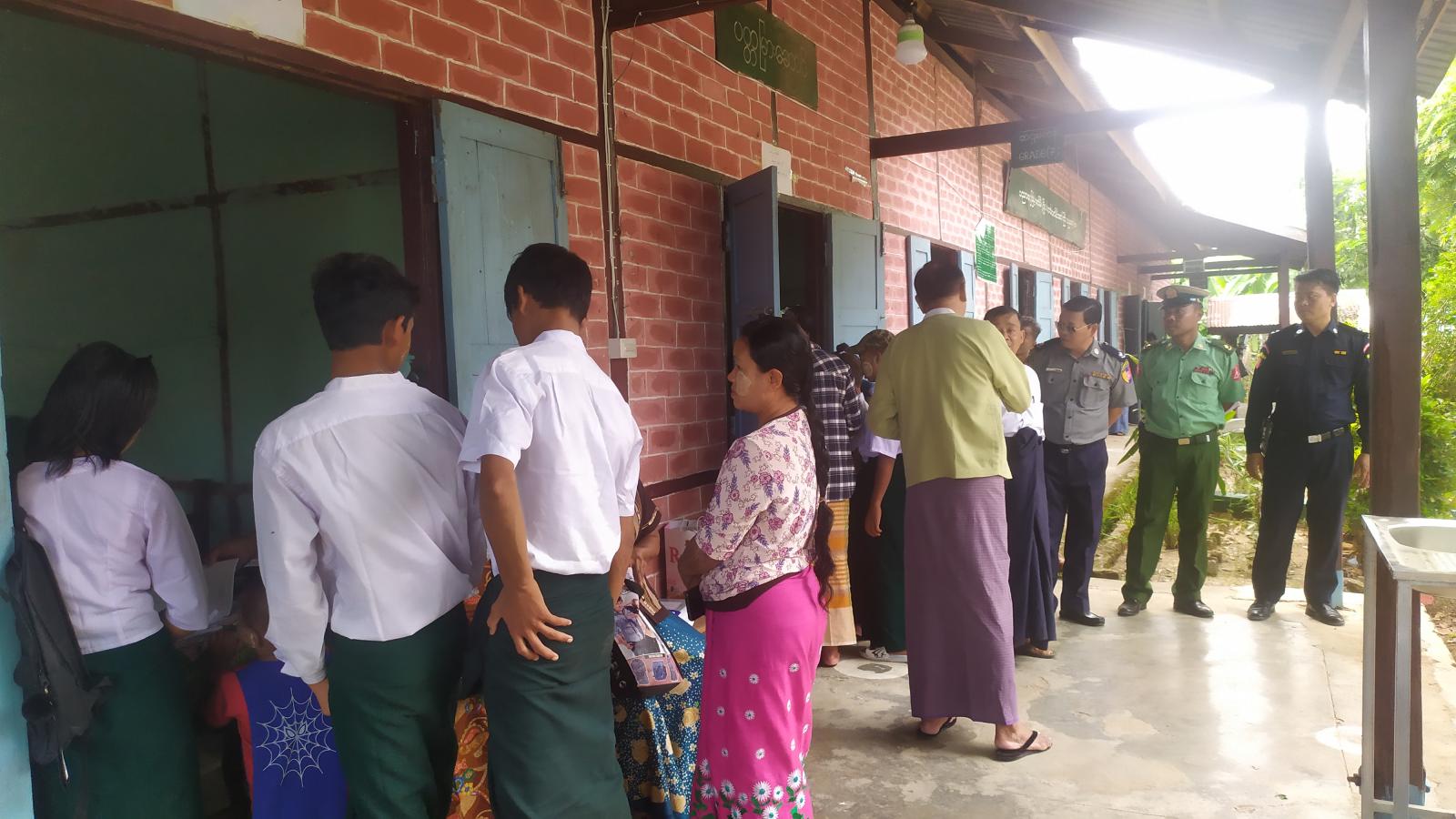 ကျောင်းအပ်နှံရေး သီတင်းပတ်တွင်လာရောက်အပ်နှံကြသည့် မိဘများနှင့် ကျောင်းသား/သူများသိရှိစေရန် ပညာရေးဝန်ကြီးဌာနမှ ထုတ်ပြန်ထားသည့် နံရံကပ်စာစောင်၊ အသိပေးကြေငြာချက်၊ နံရံကပ်ပိုစတာများ၊ အခြေခံပညာကျောင်းများပြန်ဖွင့်ချိန်တွင် ကျောင်းသား/သူများမိဘများနှင့် ဆရာများအထူး သတိပြု လိုက်နာရမည့် အချက်(၆)ချက် ၊ ကျောင်းအပ်နှံရေးအစီအစဉ်ဆိုင်ရာသိရှိရန်အချက်များကို ဗီနိုင်း၊ ပိုစတာကြီးများ နှင့်ချိတ်ဆွဲပြသထားပြီး သက်ဆိုင်ရာအတန်း လိုက်ဆရာ/ဆရာမများက လက်ခံ ဆောင်ရွက် ပေးကာ ကျောင်းအပ်ကြသည့် ကျောင်းသား/သူများအား မည်သည့်အခကြေးငွေမျှကောက်ခံမှုမရှိပဲ ကျောင်းသား/ ကျောင်းသူတစ်ဦးချင်းစီလျှင် ကျောင်းသုံးပြဌာန်း စာအုပ်၊ ဗလာစာအုပ်၊ ခဲတံဘောပင်၊ မျက်နှာအကာနှင့် နှာခေါင်းစည်းတို့ကို အခမဲ့ထုတ်ပေးလျှက်ရှိပြီး ဇွန်လ (၁) ရက်နေ့၌ ကျောင်းများ စတင်ဖွင့်လှစ်ကာ ပညာသင်ကြားသွားမည်ဖြစ်ကြောင်းသိရသည်။