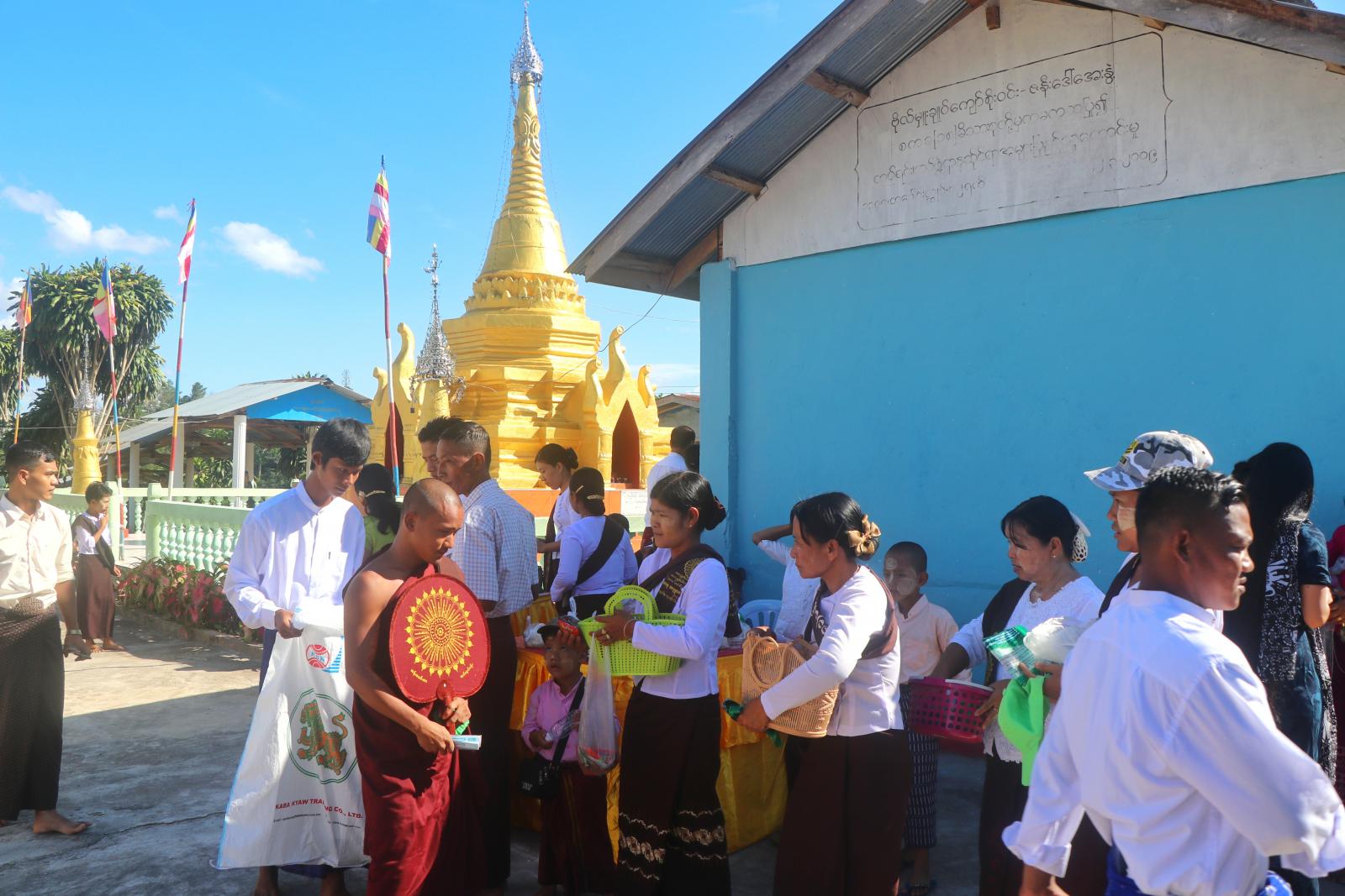 ရှေးဦးစွာ ထေရဝါဒဗုဒ္ဓသာသနာပြု(ဗဟို)ကျောင်း ဆရာတော်(မဟာသဒ္ဒမဇောတိကဓဇ) ဦးနန္ဒောဘာသနှင့် ပင့်သံဃာ (၄၅)ပါးတို့က အဝေရာသုခ သိမ်တော်အတွင်းမှ ကြွရောက်တော်မူပြီး ဓာတ်ပေါင်းစုစေတီတော်အတွင်း အလှူရှင်များက ဆွမ်းဆန်စိမ်း၊ ဝတ္ထုငွေနှင့် လှူဖွယ်ပစ္စည်းများကို ကုသိုလ်ပြုလောင်းလှူခဲ့ကြသည်။