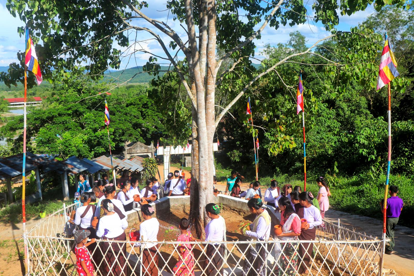 ယင်းနောက် ဆွမ်းဆန်စိမ်းလောင်းလှူပွဲနှင့် ကဆုန်ညောင်ရေသွန်းပွဲသို့ လာကြသည့် ဝတ်ရွတ်အသင်းများ၊ မြို့နယ်အတွင်းမှ အလှူရှင်များ၊ ဧည့်ပရိတ်သတ်များက ဓာတ်ပေါင်းစုစေတီတော် ပရဝဏ်အတွင်းရှိ မဟာဗောဓိ ညောင်ပင်၌ မြတ်စွာဘုရှင်းအား ရည်မှန်း၍ ဆုတောင်းမေတ္တာများ ပို့သခြင်းဖြင့် ကဆုန်ညောင်ရေ သွန်းလောင်းခြင်းကို စည်းကားသိုက်မြိုက်စွာ ကျင်းပပြုလုပ်ခဲ့ကြောင်း သိရသည်။