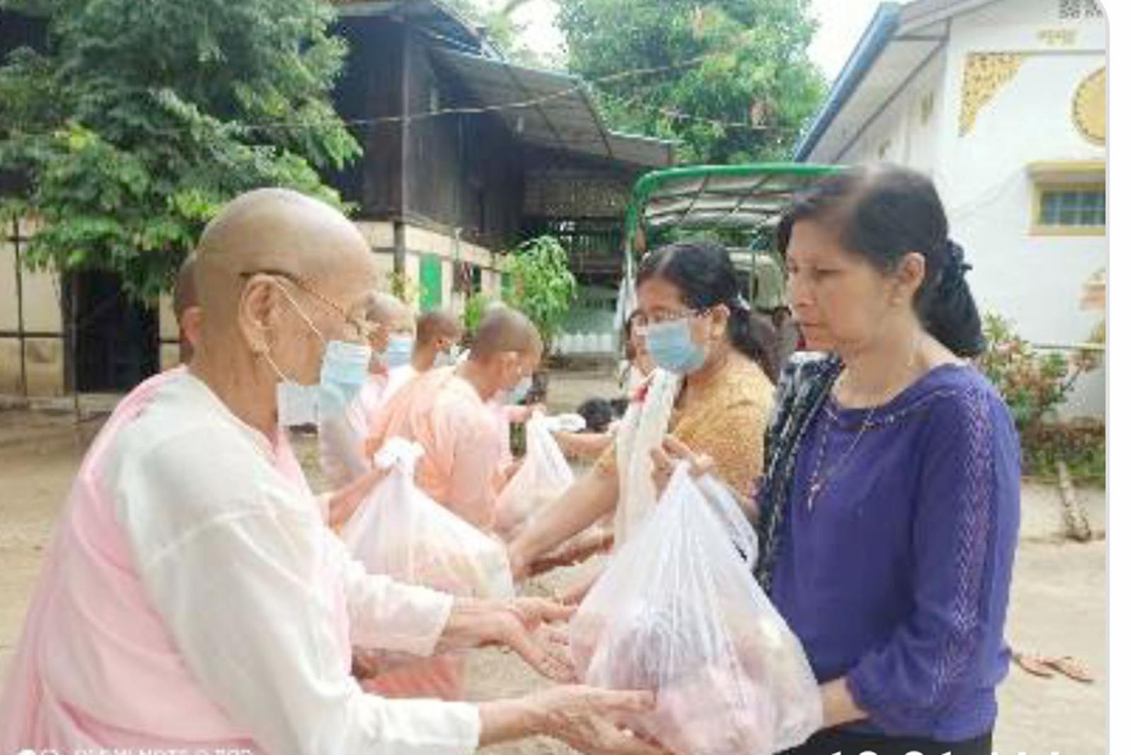 မကွေးတိုင်းဒေသကြီး သရက်မြို့၌ ယမန်နေ့နံနက်(၈)နာရီက မြို့ပေါ်ကျောင်းတိုက်အသီးသီးရှိ သီလရှင်(၆၂)ပါးတို့အား ဆင်ဖြူတော်ကျောင်းတိုက်ဆရာတော် ဦးဆောင်သည့် အကျိုးတော်ဆောင် များကရပ်ကွက်အသီးသီးမှ အလှူရှင်စေတနာရှင်များ စုပေါင်း၍ လစဉ်လပြည့်နေ့တိုင်းလှူဒါန်းသည့် ဆွမ်းဆန်နှင့်လှူဖွယ်ဝတ္ထုများကို မြို့ပေါ်ရှိ ကျောင်းတိုက်အသီးသီးသို့ သွားရောက်၍ လှူဒါန်းခဲ့သည်။