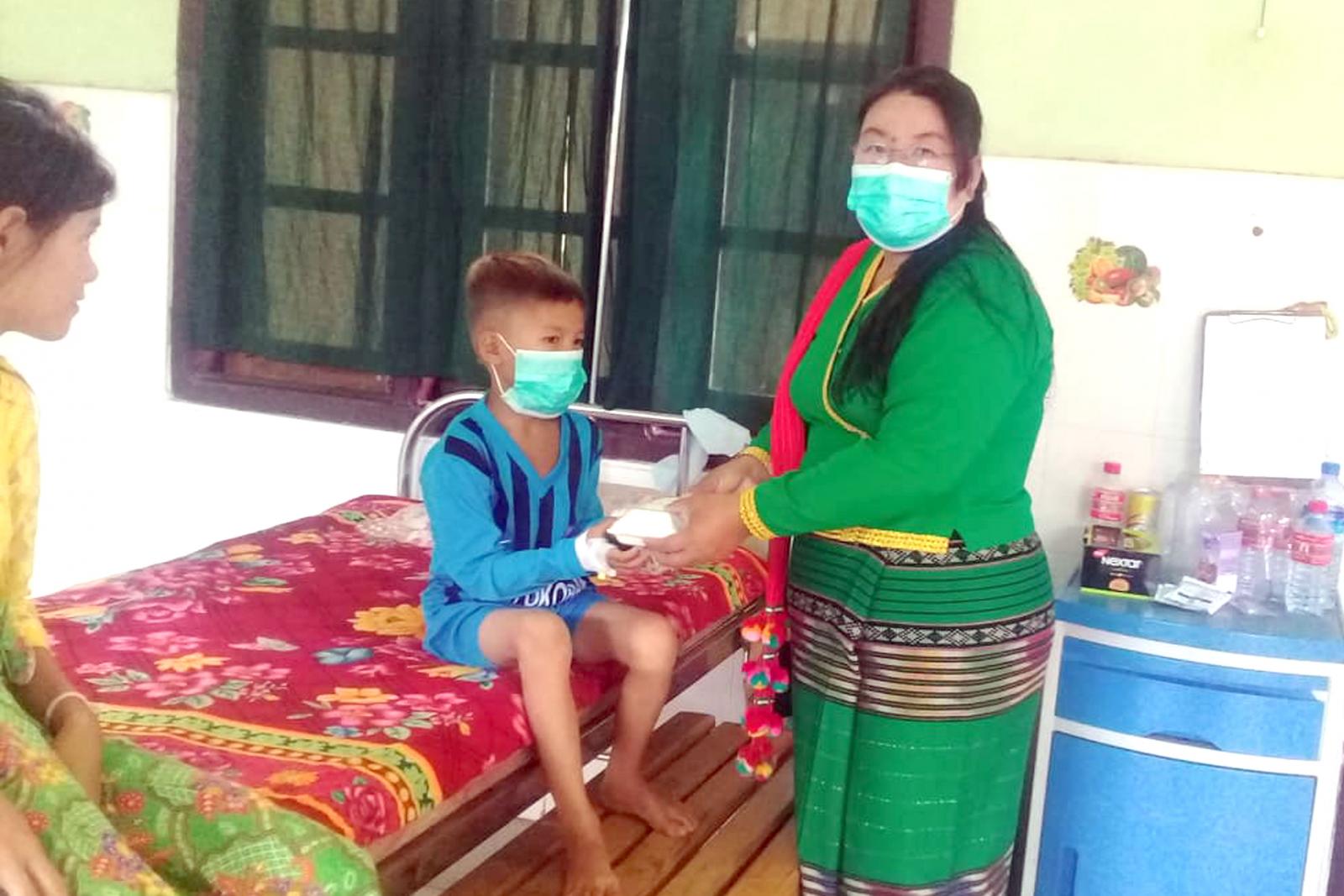 လှူဒါန်းရာတွင် ပြည်နယ်လွှတ်တော်ကိုယ်စားလှယ် ဦးစောမူးလာနှင့်အဖွဲ့က Mask (၁၀၀)ခု၊ ခေါက်ဆွဲကြော်(၁၀၀)ဘူးနှင့် ကြက်ဥ (၉၀) လုံးတို့ကိုပေးအပ်လှူဒါန်းရာ မြို့နယ်ဆရာဝန်ကြီး ဒေါက်တာ သက်ခိုင်မင်းက လက်ခံရယူပြီး ဆေးကုသမှုခံနေ သောလူနာများအား Mask နှင့်ခေါက်ဆွဲကြော်များကို လက်ဝယ်အရောက် လှူဒါန်းပေးခဲ့ကြောင်းသိရသည်။