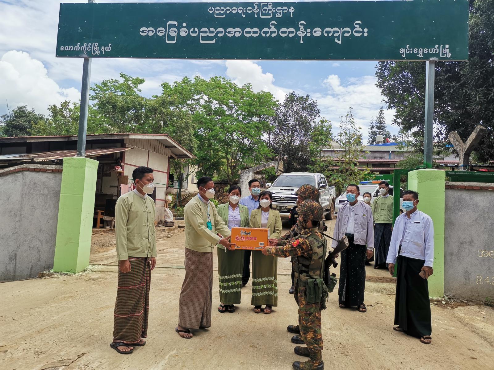 ရှမ်းပြည်နယ်မြောက်ပိုင်း၊ ကိုးကန့်ကိုယ်ပိုင်အုပ်ချုပ်ခွင့်ရဒေသ၊ လောက်ကိုင်မြို့နယ် အထွေအထွေအုပ်ချုပ်ရေးဦးစီးဌာန၊ မြို့နယ်အုပ်ချုပ်ရေးမှူး ဦးသိန်းဇော်ဦး ဦးဆောင်သည့် အဖွဲ့မှ ယနေ့ နံနက်(၁၀)နာရီအချိန်က ချင်းရွှေဟော်မြို့ ပညာရေးဌာနနှင့် ကျန်းမာရေးဌာနများသို့ သွားရောက်၍ ကိုဗစ်-၁၉ရောဂါ ကြိုတင်ကာကွယ်ရေးသုံး ကျန်းမာရေးအထောက်အကူပြုပစ္စည်းများဖြစ်သည့် နှာခေါင်းစည်း(Mask) (၄၀၀၀)ခု နှင့် အခြားစားသောက်ကုန်ပစ္စည်းများ ပေးအပ်လှူဒါန်းခဲ့ကြောင်း သိရသည်။