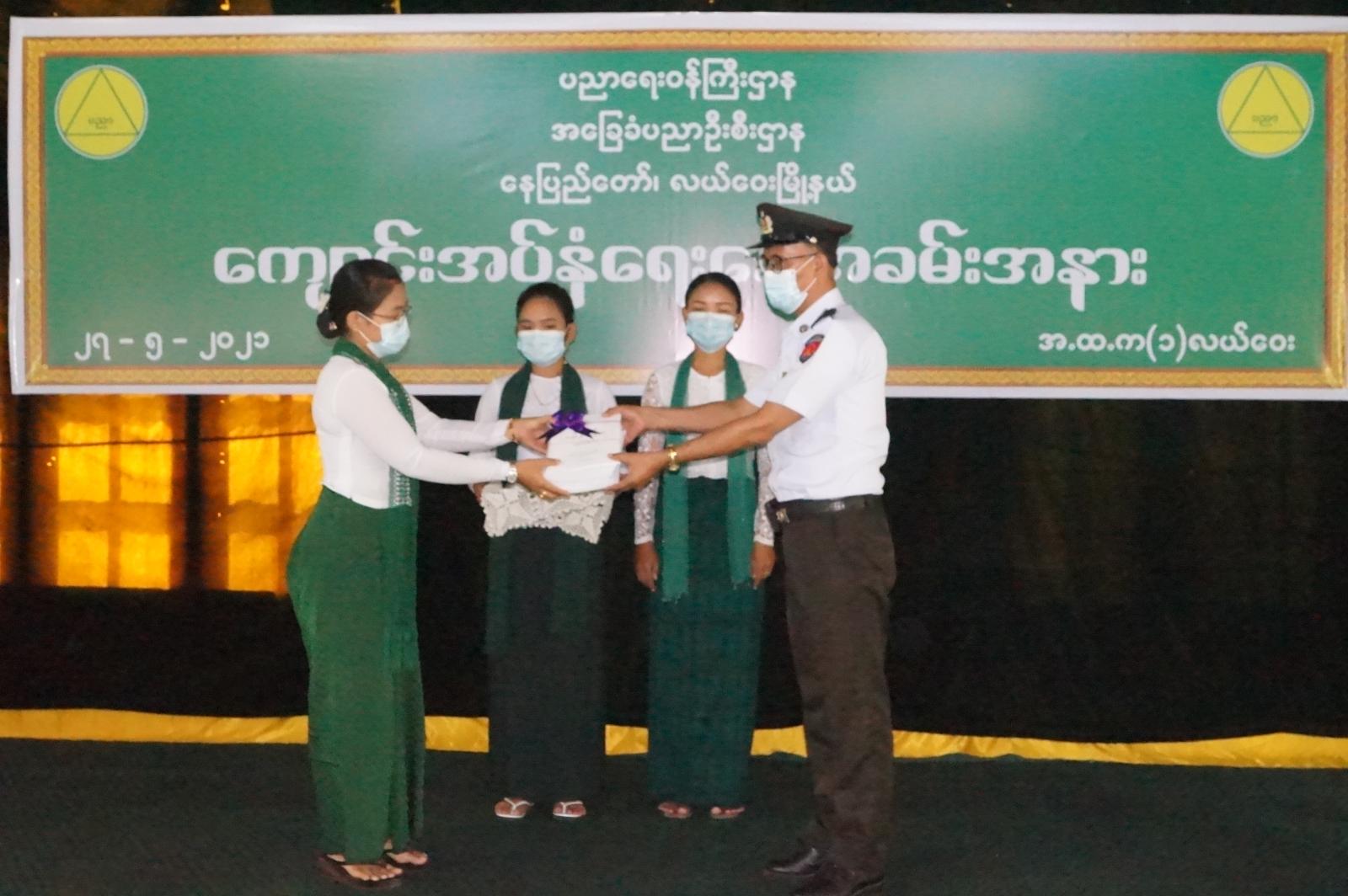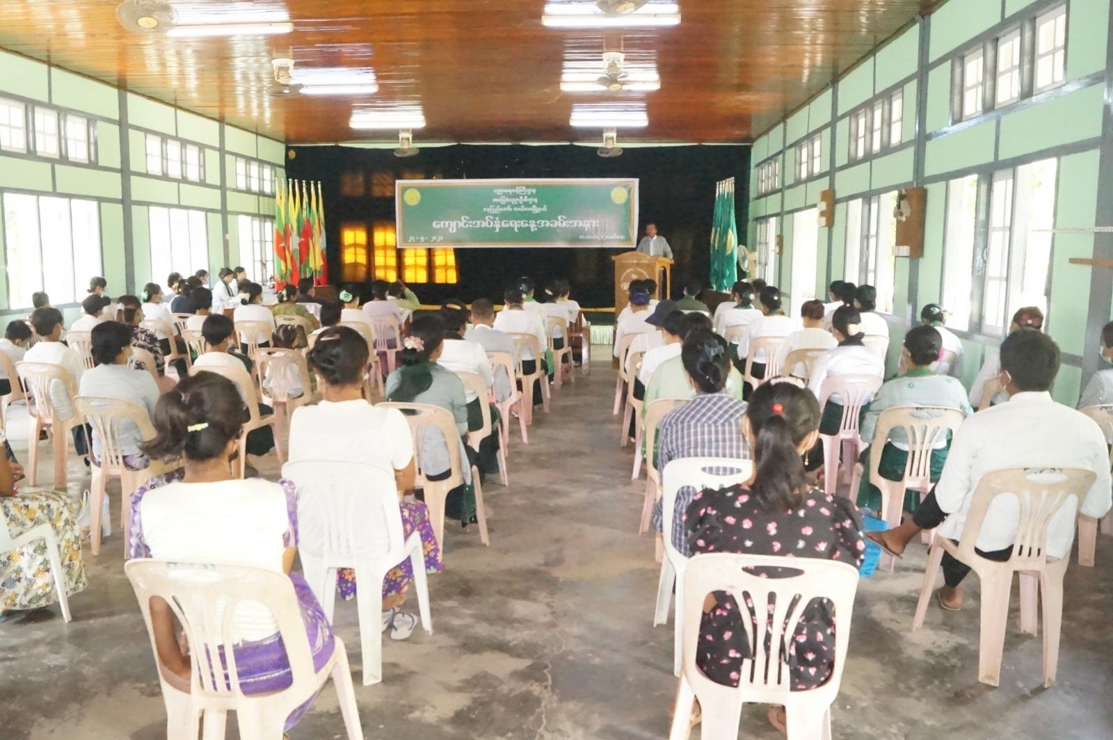 ဆက်လက်၍ မြို့နယ်ပညာရေးမှူးရုံးမှ ဒုတိယပညာရေးမှူး(တာဝန်ခံ) ဦးဇော်လင်း က ၂၀၂၁-၂၀၂၂ ပညာသင်နှစ်တွင် ကျောင်းသားမိဘများအနေဖြင့် မိမိတို့ကလေးငယ်များ ပညာသင်ယူခွင့် နောက်မကျစေရန် ဆရာဆရာများနှင့် ကျောင်းသားမိဘများပူးပေါင်း၍ ကျောင်းအပ်နှံဖို့ ဆောင်ရွက်သွားရန် လိုအပ်ကြောင်း ပြောကြားသည်။ ထို့နောက် နိုင်ငံတော် မှ အခမဲ့ထောက်ပံ့ပေးသည့် အထက်တန်းအဆင့်၊ အလယ်တန်းအဆင့်နှင့် မူလတန်းအဆင့် ဗလာစာအုပ်များနှင့် ပုံနှိပ်စာအုပ်များကို တက်ရောက်လာသူများက သက်ဆိုင်ရာကျောင်း များအလိုက် ထောက်ပံ့ပေးအပ်ခဲ့ကြောင်း သိရသည်။