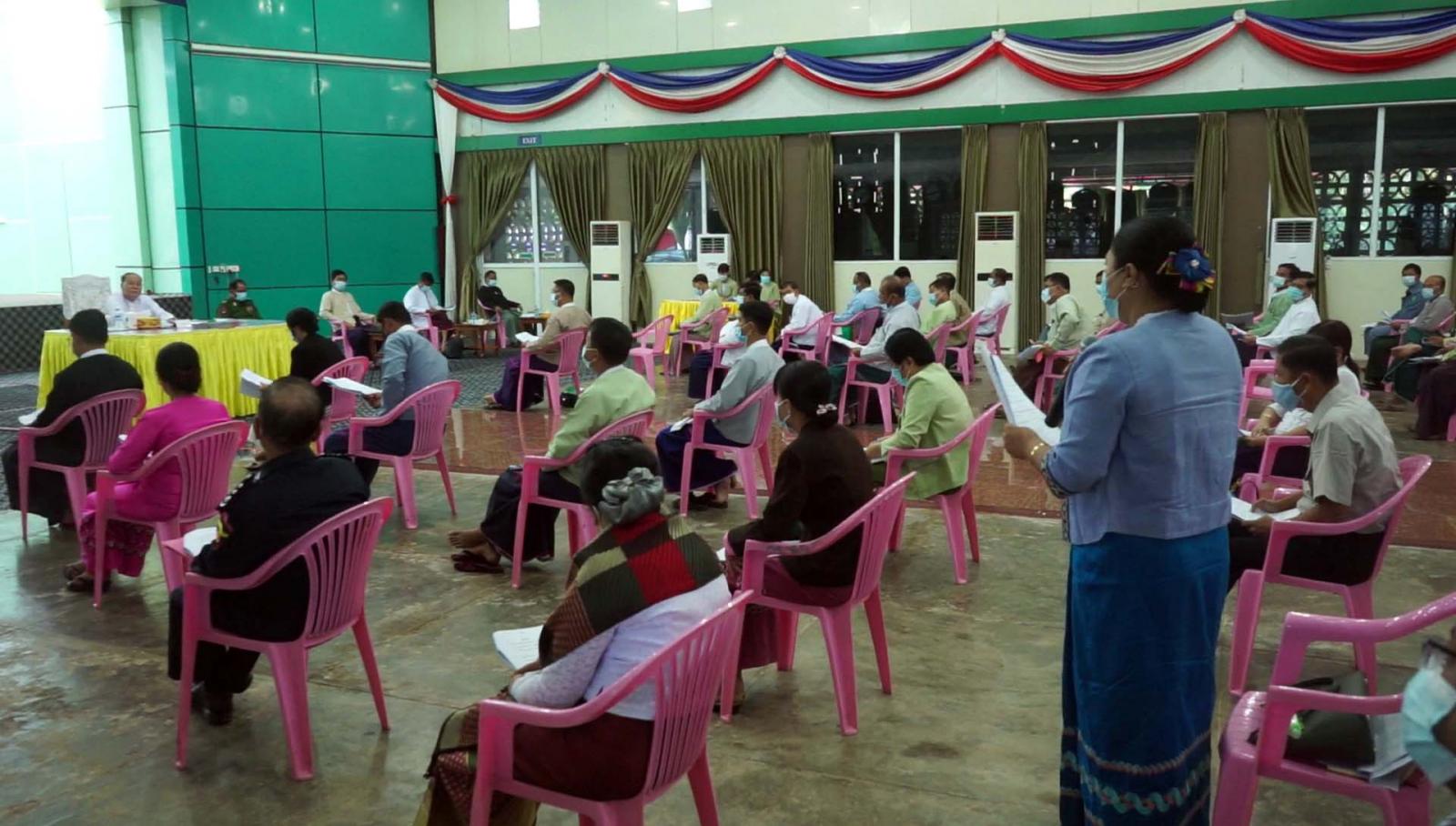 ကရင်ပြည်နယ်၊ ဘားအံမြို့တွင် ပြည်နယ်စီမံအုပ်ချုပ်ရေးကောင်စီနှင့် ပြည်နယ်အဆင့် ဌာနဆိုင်ရာများ၏ (၉/၂၀၂၁) လုပ်ငန်းညှိနှိုင်း အစည်းအဝေးကို ယမန်နေ့ နံနက် ၁၀ နာရီခန့်က ဇွဲကပင်ခန်းမ၌ ကျင်းပသည်။