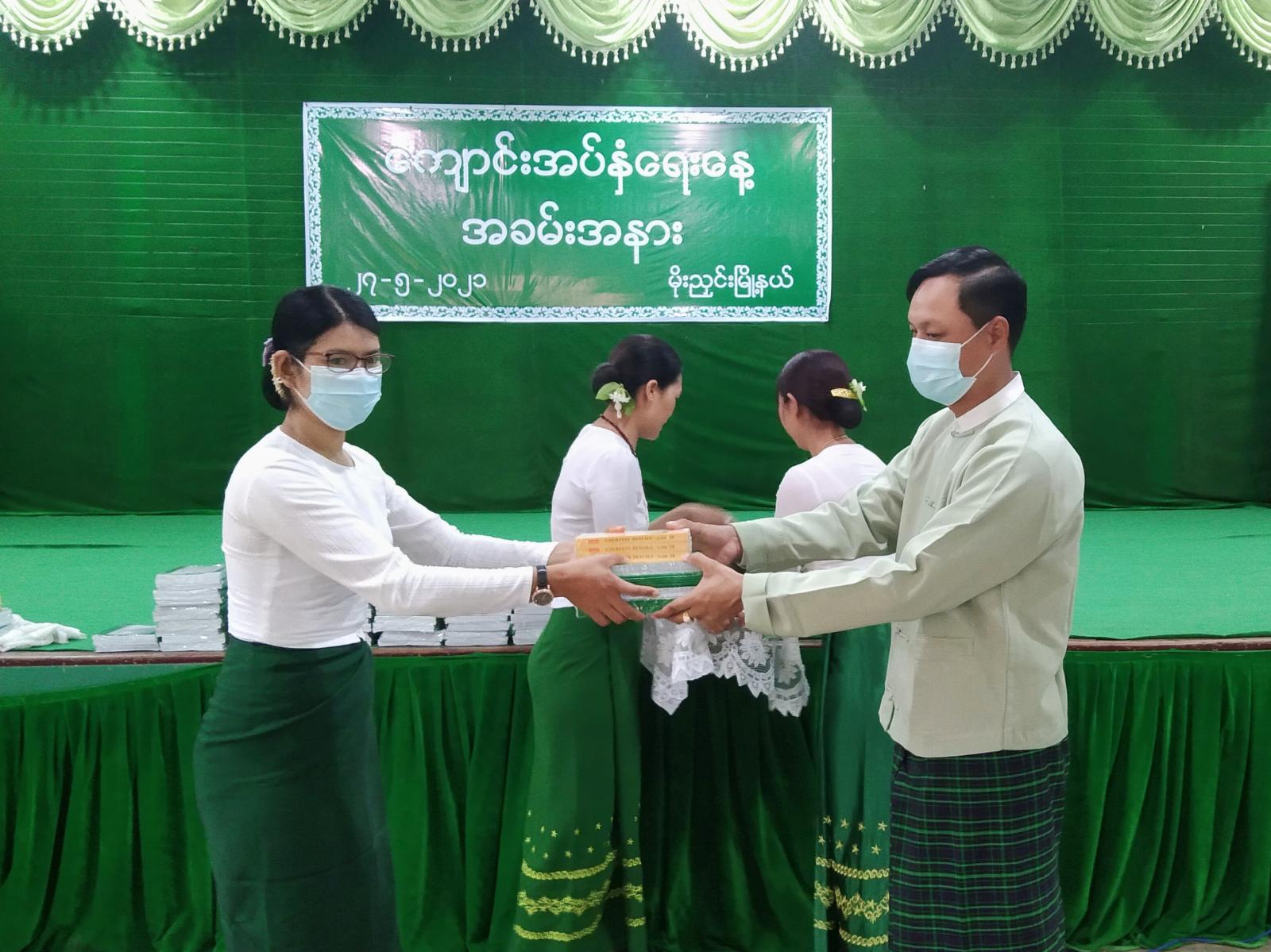 ထို့နောက် အခမ်းအနားသို့ တက်ရောက်လာကြသည့် မိုးညှင်းမြို့ပေါ် အထက်တန်း ကျောင်း၊ အလယ်တန်းနှင့် မူလတန်းကျောင်းများမှ ကျောင်းအုပ်ဆရာ/ဆရာမကြီးများအား တာဝန်ရှိသူများက ကျောင်းသုံးဗလာစာအုပ်နှင့် စာရေးကိရိယာပစ္စည်းများကို လှူဒါန်း ပေးအပ် ခဲ့ကြောင်း သိရသည်။