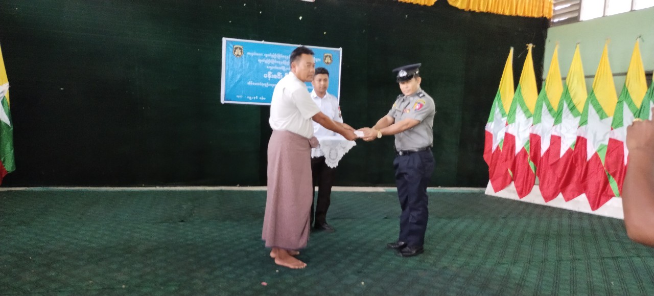 ထို့နောက် နိုင်ငံသားစီစစ်ရေးကတ်ပြားများအား မြို့နယ်စီမံအုပ်ချုပ်ရေးအဖွဲ့ ဥက္ကဋ္ဌနှင့် အဖွဲ့ဝင်များမှ ခွဆုံကျေးရွာအုပ်စု၊ အပေါက်ဝကျေးရွာအုပ်စု၊ င/တ ပေါင်းကျေးရွာ အုပ်စုနှင့် ပင်းဇိုင်းကျေးရွာအုပ်စု အုပ်ချုပ်ရေးမှူးများအား အသီးသီးပေးအပ်ခဲ့ကြောင်း သိရှိရသည်။
