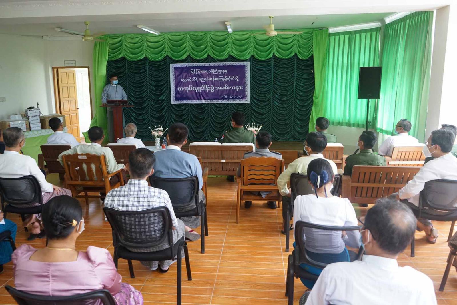 အခမ်းအနားတွင် ကမ်းရိုးတန်းဒေသ တိုင်းစစ်ဌာနချုပ်တိုင်းမှူး ဗိုလ်ချုပ်စောသန်းလှိုင်က စာကြည့်တိုက်သည် ပညာတတ်များ မွေးထုတ်ပေးသောနေရာဖြစ်ကြောင်း၊ စာဖတ်သည့် အလေ့ အကျင့်ကောင်းများရှိရန်လိုအပ်ကြောင်း၊မြန်မာ့နိင်ငံသမိုင်းကြောင်းသိရှိထားရန်လိုအပ်ကြောင်း၊ စာကြည့်တိုက်တွင် လိုအပ်ချက်များရှိပါက ကော်မတီဝင်များအနေဖြင့် ဝိုင်းဝန်းကူညီ ဆောင်ရွက် ပေးကြရန်လိုကြောင်းပြောကြားသည်။
