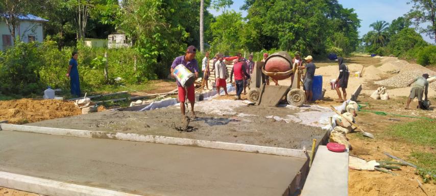 ကွန်ကရစ်ခင်းခြင်းလုပ်ငန်းများဆောင်ရွက်ရာတွင် ရှည်(၈၅၀)ပေ၊အကျယ်(၁၆)ပေ၊ ထု(၆)လက်မရှိ လမ်းအား သတ်မှတ်ကာလအတွင်း အချိန်မီပြီးစီးနိုင်ရေးအတွက် ပိုင်ကျုံမြို့ စည်ပင်သာယာရေး အဖွဲ့မှ အငယ်တန်း အင်ဂျင်နီယာ-၂ဒေါ်သိမ့်သိမ့်မှ ကြီးကြပ်ဆောင်ရွက်လျက်ရှိကြောင်းသိရသည်။