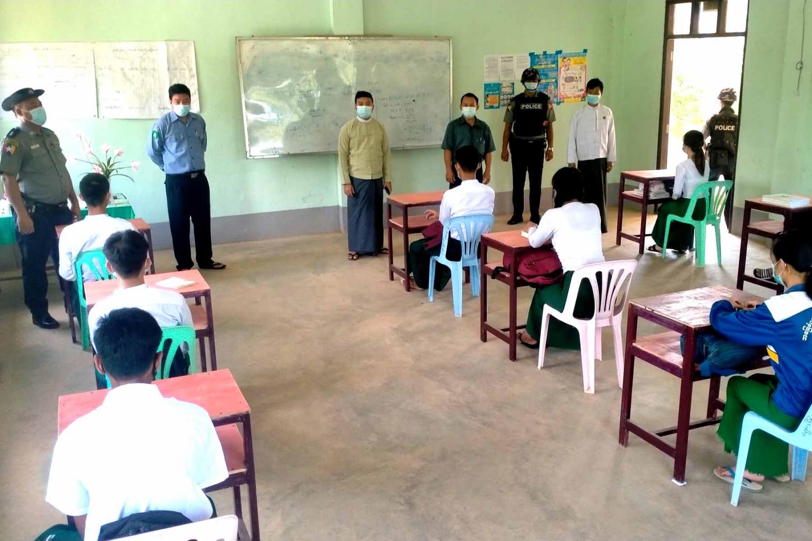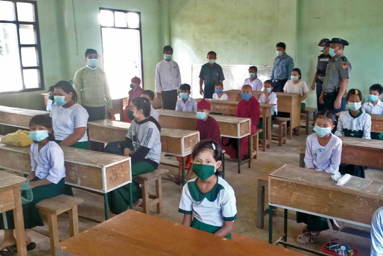 မြို့အုပ်ချုပ်ရေးမှူး ဦးအောင်ပြည့်ဖြိုး၏ ကြီးကြပ်မှုဖြင့် စစ်ဘက်ဆိုင်ရာများ၊ ရဲတပ်ဖွဲ့ဝင်များနှင့် တာဝန်ရှိသူများ၊ သက်ဆိုင်ရာ ရပ်ကျေးအုပ်ချုပ်ရေး အဖွဲ့ဝင်များ၊ ကျောင်းသားမိဘကော်မတီများ ပါဝင်သောအဖွဲ့က ကျောင်းဝင်ပေါက်ဝတွင် အပူချိန်တိုင်းခြင်း၊ နှာခေါင်းစည်း(Mask)နှင့် Face Shield များ တပ်ဆင်စေခြင်း၊ လက်ဆေးစေခြင်း၊ ကျောင်းဝင်း အတွင်း/အပြင် လုံခြုံရေးနှင့် ကိုဗစ်-၁၉ စည်းကမ်းချက်များနှင့် ညီညွတ်မှု ရှိ/မရှိ စသည်တို့ကို ကြည့်ရှုစစ်ဆေးမှုများ ပြုလုပ်ခဲ့ကြသည်။
