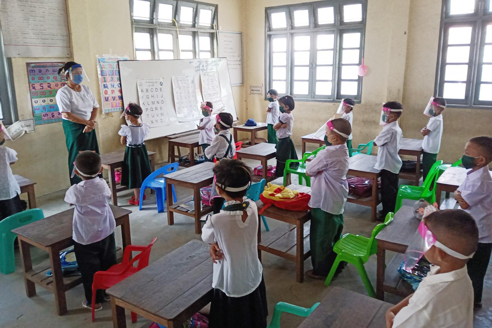 ထိုသို့ ကျောင်းသား ကျောင်းသူများအား စာသင်ကြားရာတွင် ကိုဗစ်-၁၉ ရောဂါ ကူးစက်မှု ကာကွယ် နိုင်ရန်အတွက် လမ်းညွှန်ချက်များနှင့်အညီ ကျောင်းသား ကျောင်းသူများအား ကျောင်းအဝင်၌ ကိုယ်အပူ ချိန်တိုင်းတာခြင်း၊ လက်ဆေးဘေစင်များ ထားရှိ၍လက်ဆေးစေခြင်း၊ အခမဲ့ဖြန့်ဝေ ပေးထားသည့် နှာခေါင်းစည်း(Mask)များနှင့် Face Shield များအား တပ်ဆင်စေခြင်း အစရှိသည်တို့အား ဆောင်ရွက်၍ သင်ကြားပေးလျက်ရှိကြောင်းသိရသည်။