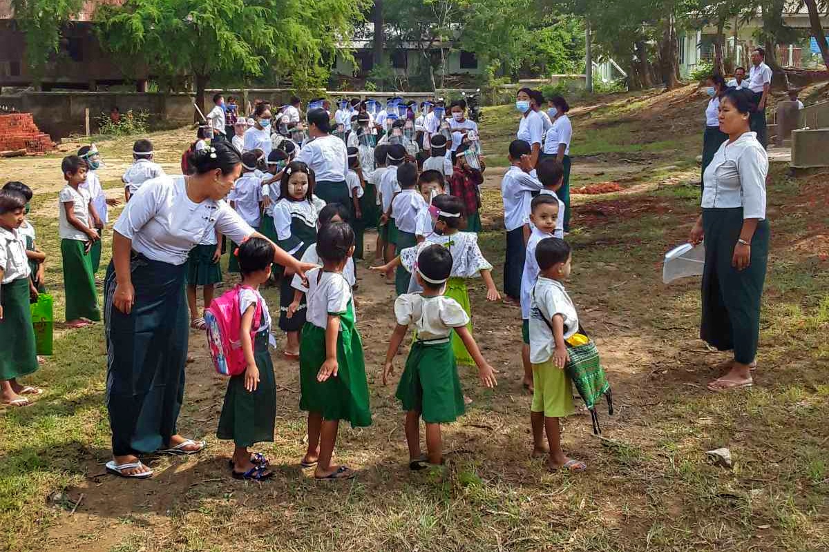ကျောင်းသား/သူများ စာသင်ကြားရာတွင် ကိုဗစ်-၁၉ ရောဂါ ကူးစက်မှုကာကွယ် နိုင်ရေးအတွက် လမ်းညွှန်ချက်များနှင့်အညီ ကျောင်းသား/သူများအား ကျောင်းဝန်းအဝင်၌ ကိုယ်အပူချိန်တိုင်းခြင်း၊ လက်ဆေးဘေစင်ထားရှိ၍ လက်ဆေးစေခြင်း၊ အခမဲ့ဖြန့်ဝေပေးထားသည့် ပါးစပ်နှာခေါင်းစည်း (Mask)နှင့်(Face Shield) တို့တပ်ဆင်စေခြင်း အစရှိသည်တို့အား ဆောင်ရွက်၍ သင်ကြားပေးလျက်ရှိကြောင်း သိရသည်။