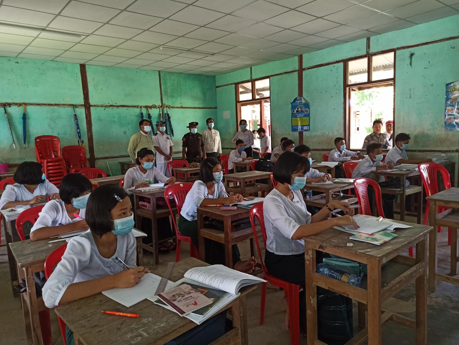 ထိုသို့စစ်ဆေးရာတွင် ကျန်းမာရေးနှင့်အားကစားဝန်ကြီးဌာနမှ ထုတ်ပြန်ထားသည့်ကိုဗစ်-၁၉ ရောဂါ ကာကွယ်ရေးဆိုင်ရာဆောင်ရွက်ထားမှုအခြေအနေများ၊ကျောင်းသား၊ကျောင်းသူများပညာသင်ကြားရာတွင် အေးချမ်းစွာပညာသင်ကြားနိုင်ရေးအတွက် လုံခြုံရေးချထားမှုအခြေအနေများ၊ ပညာသင်ကြားရာ တွင် နှောင့်ယှက်ခြိမ်းခြောက်ခြင်းများရှိပါက အခြေခံပညာဦးစီးဌာနနှင့်အထွေထွေအုပ်ချုပ်ရေးဦးစီး ဌာနများသို့ အချိန်မရွေးအကြောင်းကြားဆက်သွယ်နိုင်ကြောင်း အသိပေးပြောကြားပြီး သိရှိလိုသည်များကို မေးမြန်းခဲ့ကာ အခြေခံပညာကျောင်းများမှကျောင်းအုပ်အုပ်ကြီးများက ပြန်လည်ဖြေကြားပေးခဲ့သည်။
