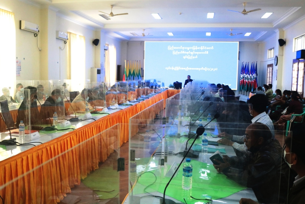ချင်းပြည်နယ် စီမံအုပ်ချုပ်ရေးကောင်စီနှင့် ပြည်နယ်အဆင့် ဌာနဆိုင်ရာများ၏ လုပ်ငန်းညှိနှိုင်း အစည်းအဝေးကို ယမန်နေ့ နံနက် ၁၀ နာရီက ဟားခါးမြို့ ပြည်နယ်စီမံအုပ်ချုပ်ရေး ကောင်စီရုံး အစည်းအဝေးခန်းမ၌ ကျင်းပသည်။