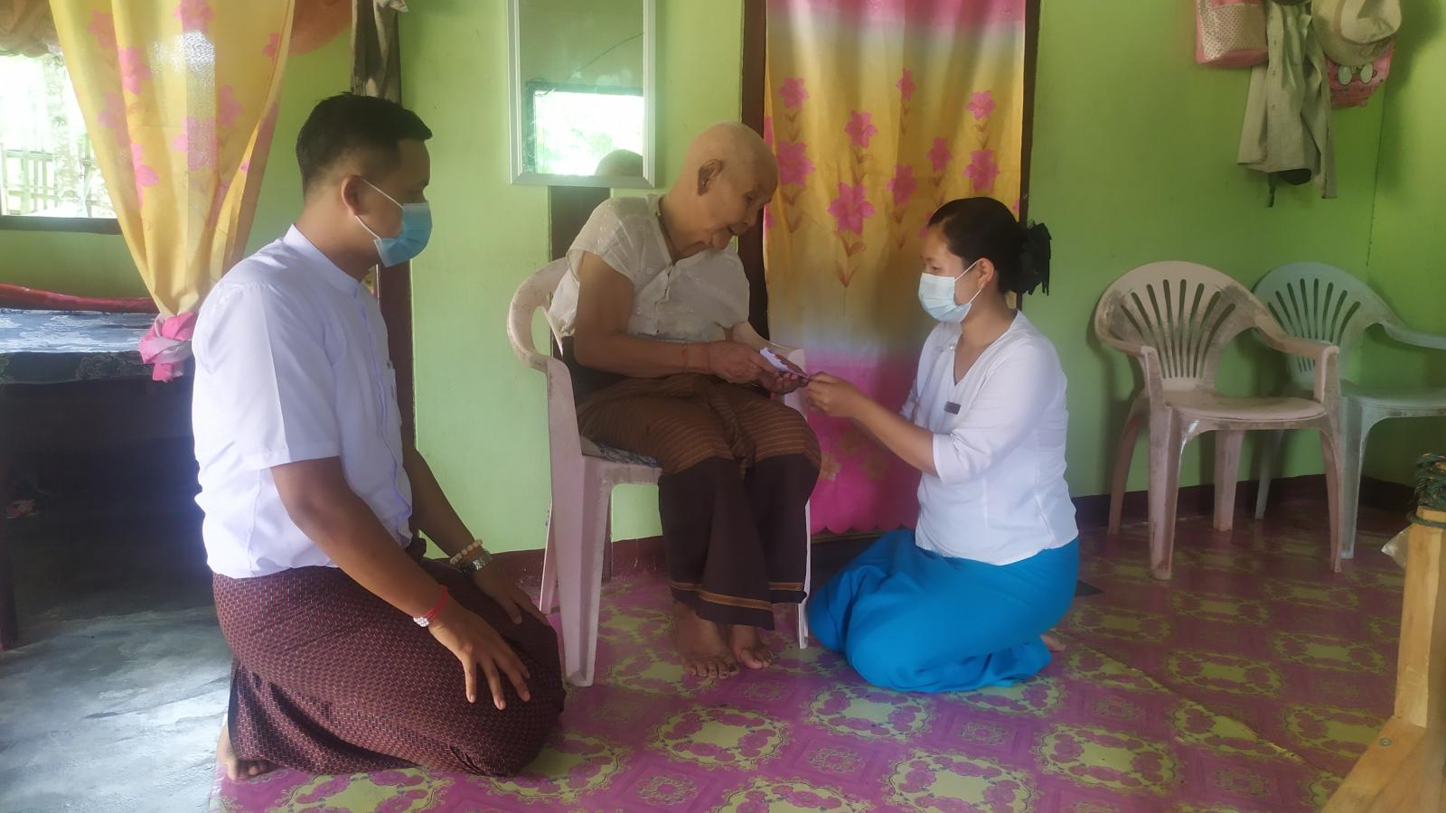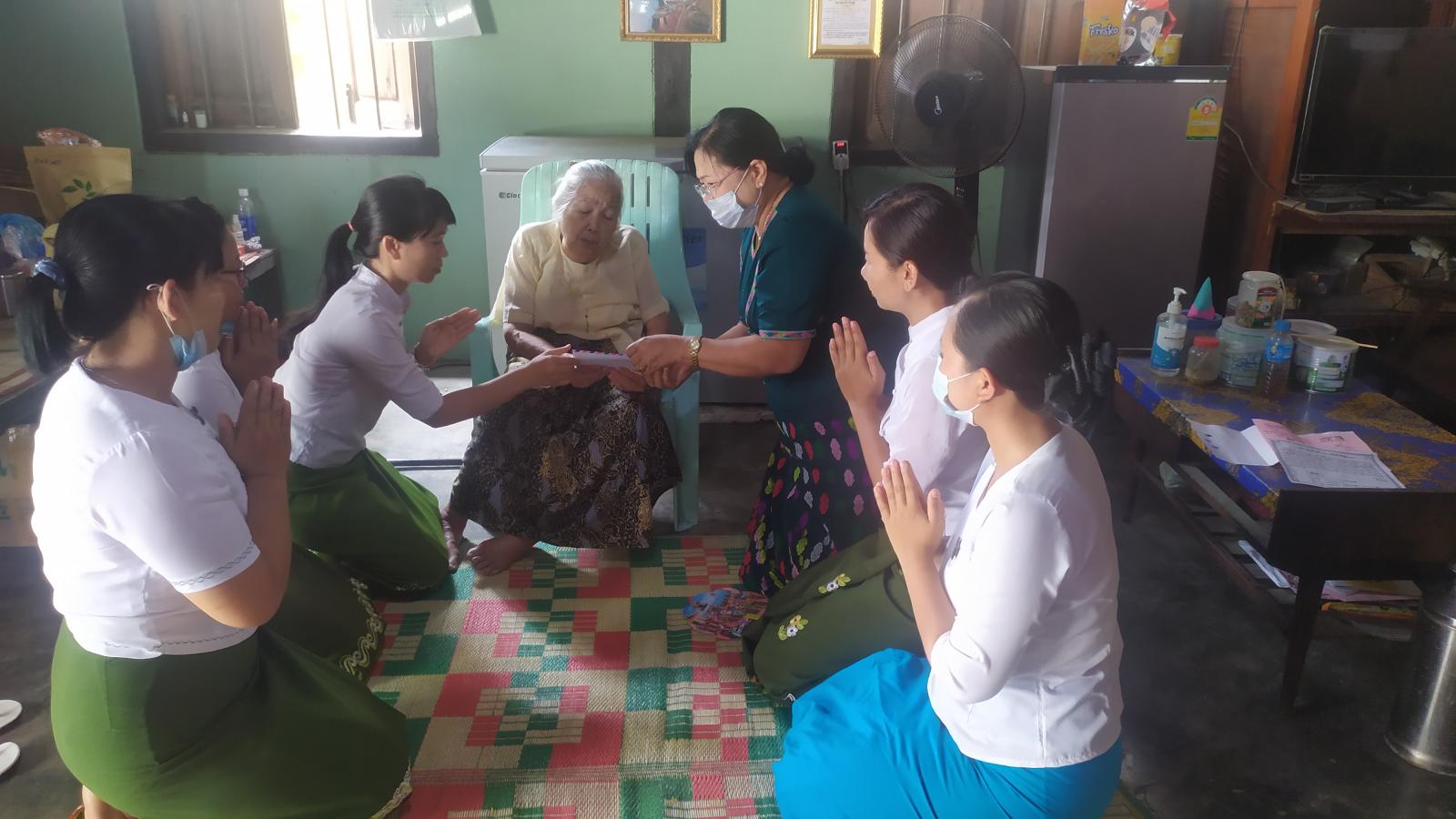 ထိုသို့ထောက်ပံ့ပေးရာတွင် မြို့နယ်အထွေထွေအုပ်ချုပ်ရေးဦးစီးဌာနမှ ဒုတိယဦးစီးမှူးဦးဇင်ထက်ဝေ၊ မြို့နယ်လူမှုဝန်ထမ်းဦးစီးဌာနမှ လူမှုဝန်ထမ်း-၄ ဒေါ်လူစီ၊ မြို့နယ်အမျိုးသမီးရေးရာအဖွဲ့ဥက္ကဌ ဒေါ်ခင်ဝင်းတင့်နှင့်အဖွဲ့ဝင်များ၊သက်ဆိုင်ရာရပ်ကျေးစာရေးနှင့် ရပ်ကွက်အုပ်ချုပ်ရေးမှူးတို့က အောက် စျေးတန်းရပ်ကွက်ရှိ အသက်(၈၅)နှစ်နှင့်အထက် သက်ကြီးဘိုးဘွားတစ်ဦးလျှင်(၃၀၀၀၀)ကျပ်နှုန်းဖြင့် (၁၃)ဦးတို့အား စုစုပေါင်းငွေကျပ် (၃၉၀၀၀၀) ကျပ်ကိုအိမ်တိုင်ရာရောက် သွားရောက်၍ ထောက်ပံ့ ပေးအပ်ခဲ့ကြောင်း သိရသည်။