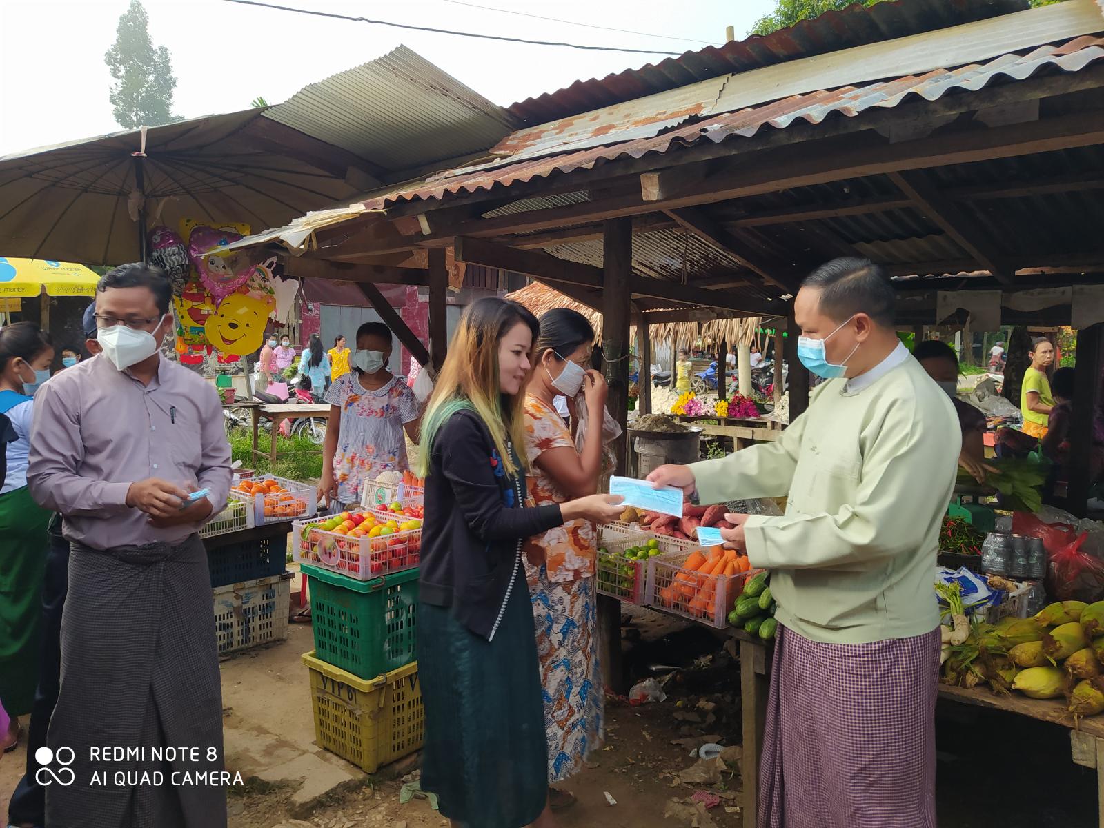 ကိုဗစ်- ၁၉ရောဂါ ကူးစက်ပြန့်ပွားမှု ပြန်လည်ဖြစ်ပေါ်နေမှုကြောင့် ရောဂါကူးစက်မှုကာကွယ် ထိန်းချုပ် နိုင်ရေး အတွက် ပါးစပ်နှာခေါင်းစည်း Mask များ လိုက်လံဝေငှ၍ အသိပေးဆောင်ရွက်သည့် Mask Compaign လှုပ်ရှားမှု တစ်ရပ်ကို ခမောက်ကြီးမြို့တွင်ယနေ့နံနက်ပိုင်းက ပြုလုပ်ခဲ့ကြ သည်။