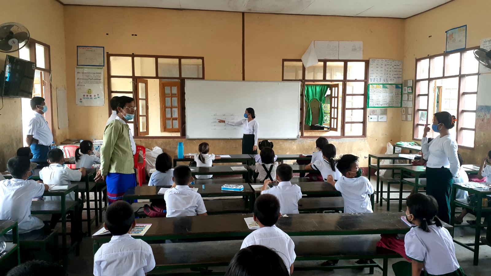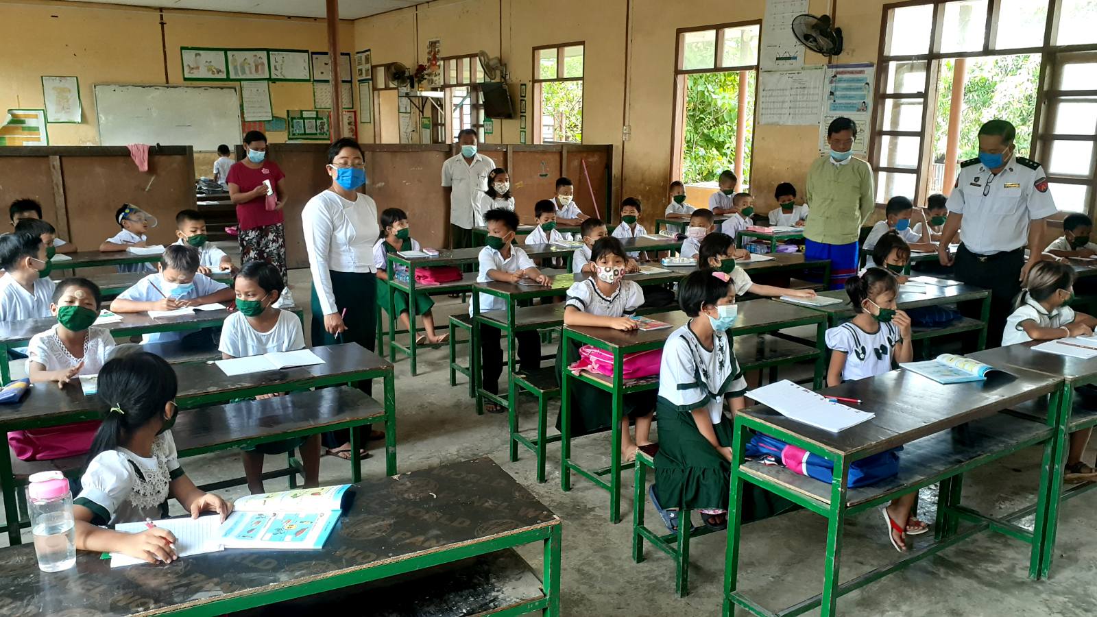ကရင်ပြည်နယ် လှိုင်းဘွဲမြို့နယ်တွင် ဇွန်လ(၁)ရက်နေ့က အခြေခံပညာကျောင်းများ စတင်ဖွင့်လှစ်ပြီး ကျောင်းများတွင် ပညာသင်ကြားနေမှု၊ ကိုဗစ်-၁၉ ရောဂါ ကာကွယ်ရေးနှင့်အညီ စီစဉ်ဆောင်ရွက်ထားရှိမှုအခြေအနေအား ယနေ့နံနက် (၉)နာရီခွဲ က တာဝန်ရှိသူများ သွားရောက်ကြည့်ရှုစစ်ဆေးခဲ့ကြောင်း သိရသည်။