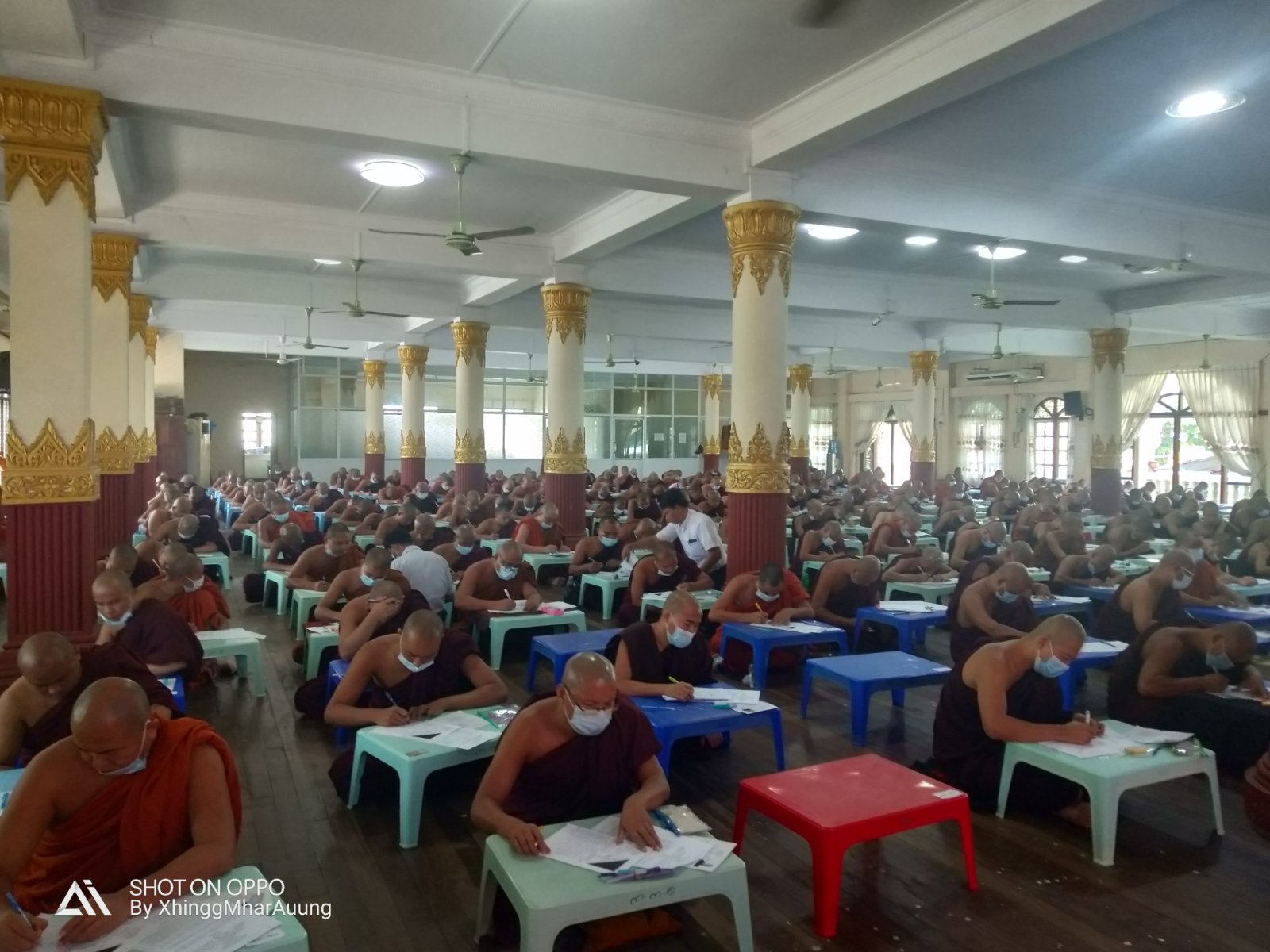 ဓမ္မာစရိယစာမေးပွဲ ဒုတိယနေ့ ဖြေဆိုရာသို့ သင်္ဃန်းကျွန်းမြို့နယ်သံဃာနာယာက ဆရာတော် ကြီးများ၊ စာမေးပွဲကြီးကြပ် ဆရာတော်များ၊မြို့နယ် စီမံအုပ်ချုပ်ရေးအဖွဲ့ ဥက္ကဋ္ဌ နှင့်အဖွဲ့ဝင်များ၊ခရိုင် သာသနာရေးမှူးနှင့် သက်ဆိုင်ရာ တာဝန်ရှိသူများ တက်ရောက်ခဲ့ကြပြီး မြို့နယ်ကြက်ခြေနီ အသင်း ဥက္ကဋ္ဌနှင့် တပ်ဖွဲ့ဝင်များ၊ ရပ်ကွက် အုပ်ချုပ်ရေး အဖွဲ့များက စာဖြေဆိုသူ ရဟန်း သံဃာတော်များကို ကိုဗစ်-၁၉ ရောဂါ ကာကွယ်ရေးအတွက် ကိုယ် အပူ ချိန်တိုင်းတာ ပေးခြင်း၊ နှာခေါင်း စည်းများ ပေးဝေခြင်းစသည့်တို့ကို ကျန်းမာရေးစောင့်ရှောက်မှု ပေးခဲ့ ကြောင်း သိရသည်။