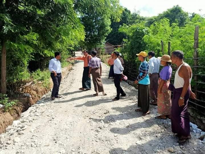 ထိုသို့ကွင်းဆင်းဆောင်ရွက်ရာတွင် (၆)မိုင် စခန်းသာကျေးရွာရှိ အရှည် (၂၆၇၀) ပေရှိ ရွာတွင်းလမ်းအား ဗြုန်းကျောက်ခင်းခြင်း၊ ကွင်း (၃၀) ကျေးရွာတွင် အရှည်ပေ (၆၀၀) ပေမြေလမ်းအား အနက် (၂) ပေ၊ အကျယ် (၂) ပေ ရေမြောင်းတူးဖော်ခြင်း၊ အရှည် (၁၀၅၀) ပေ ရွာတွင်းလမ်းအား ဗြုန်းကျောက်ခင်းခြင်းလုပ်ငန်းများကို အမှတ် (၁) တိုင်းဒေသကြီးလွှတ်တော်ကိုယ်စားလှယ် ဦးစိုးလွင်၊ မြို့နယ်ကျေးလက်ဒေသဖွံ့ဖြိုးတိုးတက်ရေးဦးစီးဌာန မြို့နယ်ဦးစီးမှူး ဦးအောင်ကျော်ဆန်းနှင့် ဌာနဝန်ထမ်းများ၊ ရပ်မိ/ရပ်ဖများ၊ ရပ်ကွက်အုပ်ချုပ်ရေးမှူးများမှ လုပ်ငန်းဆောင်ရွက်နေမှုများအား ကွင်းဆင်းကြည့်ရှု့ပြီး သတ်မှတ်ရက်အတွင်း ပြီးစီးအောင် ဆောင်ရွက်ရေး ဆွေးနွေးမှာကြားခဲ့သည်။