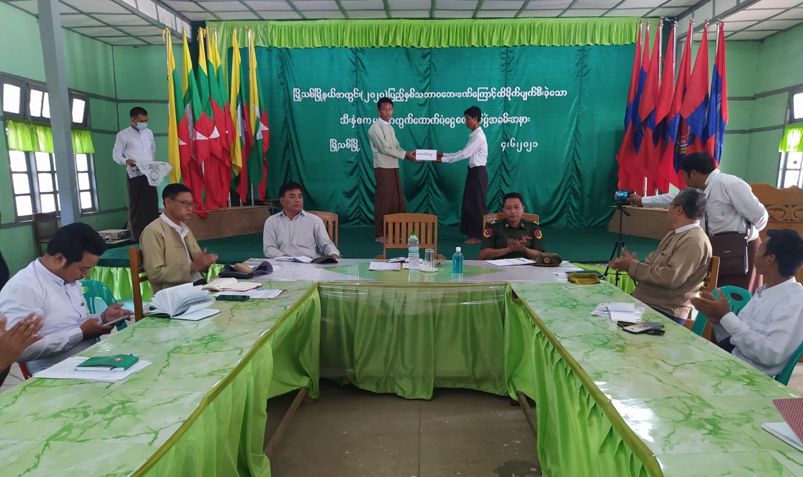 အခမ်းအနားတွင် မြို့နယ်စီမံအုပ်ချုပ်ရေးအဖွဲ့ဥက္ကဌ ဦးကျော်ဝင်းထက်မှ အဖွင့်အမှာစကား ပြောကြားပြီး စိုက်ပျိုးရေးဦးစီးဌာန မြို့နယ်ဦးစီမှူး ဦးဇော်လင်းမှ ၂၀၂၀ ပြည့်နှစ် ၊ ထိခိုက်ပျက်စီး ခဲ့သည့် သီးနှံဧကများအတွက် ထောက်ပံ့ငွေပေးအပ်မှုအခြေအနေများကို ရှင်းလင်းပြောကြားကာ တာဝန်ရှိသူများက ဆူးတပ်ကြီး ၊ ဒန့်ဒလွန်ပင် ၊ ကံဆွယ် ၊ ဂွေးကုန် ၊ မြတ်လေးကုန်းကျေးရွာအုပ်စု များမှတောင်သူ(၁၀၀)ဦးကို မိုးနှမ်း(၁၈၈)ဧက၊ စပါး(၂)ဧက အတွက် စပါး(၁)ဧကလျှင် တစ်သောင်း နှုန်း ၊ နှမ်း(၁)ဧကလျှင် ငါးထောင်နှုန်းဖြင့် ဧက (၁၉၀) အတွက် စုစုပေါင်း ထောက်ပံ့ငွေ(၉)သိန်း(၆) သောင်းကျပ် ပေးအပ်ခဲ့သည်။