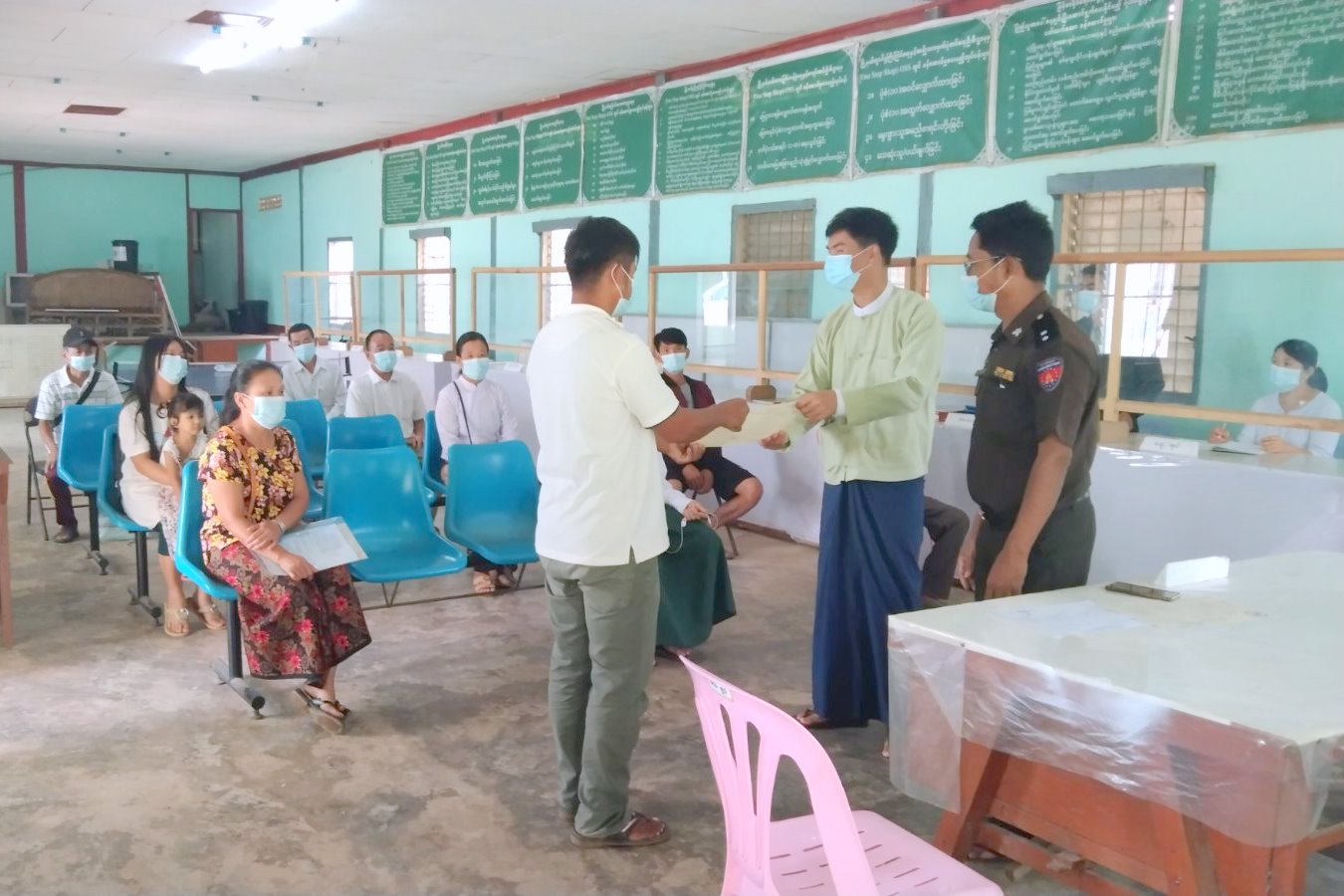 ထို့နောက် ဒေသခံပြည်သူများအား နိုင်ငံသားစိစစ်ရေးကတ်၊ အိမ်ထောင်စုဇယားနှင့် ပြောင်းဝင်/ ပြောင်းထွက် လူဦးရေစာရင်းများကို မြို့နယ်စီမံအုပ်ချုပ်ရေးအဖွဲ့ဥက္ကဋ္ဌ မြို့နယ်အုပ်ချုပ်ရေးမှူး ဦးနေမြတ်သူ၊ မြို့နယ်လူဝင်မှုကြီးကြပ်ရေးနှင့် ပြည်သူ့အင်အားဆိုင်ရာဦးစီးဌာနမှ လဝကမှူး ဦးပွားမောင်နှင့် တာဝန်ရှိသူများက အသီးသီး ပေးအပ်သည်။