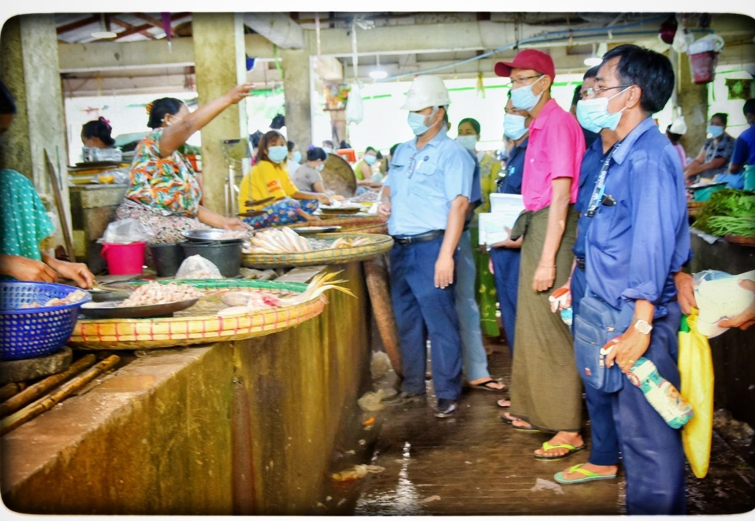 ရန်ကုန်တိုင်းဒေသကြီး၊ ရန်ကုန်တောင်ပိုင်းခရိုင်၊ ကွမ်းခြံကုန်းမြို့နယ်၊ ပြည်သူများ နေ့စဉ်စားသုံးနေ သည့် အသား၊ ငါးများ သန့်ရှင်းလတ်ဆတ်မှုရှိစေရေးနှင့် ကိုဗစ် ညွှန်ကြားချက်နှင့်အညီ ဈေးရောင်း ချမှုရှိ/မရှိ လိုက်လံစစ်ဆေးခြင်းကို ယမန်နေ့နံနက်ပိုင်းက ဈေးဆိုင်များအား လိုက်လံ စစ်ဆေးခဲ့ကြ သည်။