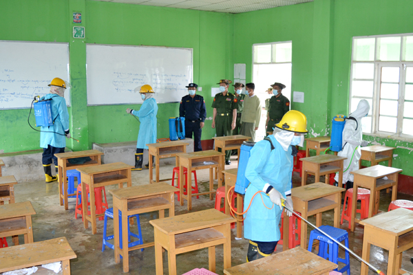 အဆိုပါ ဆောင်ရွက်နေမှုတွင် စစ်ဗျူဟာအဖွဲ့(အခြေချ)(တန့်ယန်း)မှ စစ်ဗျူဟာမှူးကြီး ဗိုလ်မှူးကြီး ခွန်အောင်သွင်၊ မြို့နယ်စီမံအုပ်ချုပ်ရေးအဖွဲ့ဥက္ကဌ မြို့နယ်အုပ်ချုပ်ရေးမှူး ဦးစိုးမင်းထက်နှင့် တာဝန်ရှိသူတို့က အမှတ်(၂)အခြေခံပညာအထက်တန်းကျောင်းနှင့် အမှတ်(၂)ရပ်ကွက်ရှိ အခြေခံပညာအလယ်တန်းကျောင်းတို့ကို ပိုးသတ်ဆေးဖျန်းပေးနေသည့် အမှတ်(၃)တပ်မတော်ဆေးရုံ (ခုတင်-၂၅) မှ ဆေးဘက်ဆိုင်ရာ တပ်မတော်သားများနှင့် မြို့နယ်အရန်မီးသတ်တပ်ရင်းမှ တပ်ဖွဲ့ဝင်များကို ကြည့်ရှုအားပေးကာ လိုအပ်သည်များကို ကူညီဆောင်ရွက်ပေးခဲ့ကြောင်း သိရသည်။