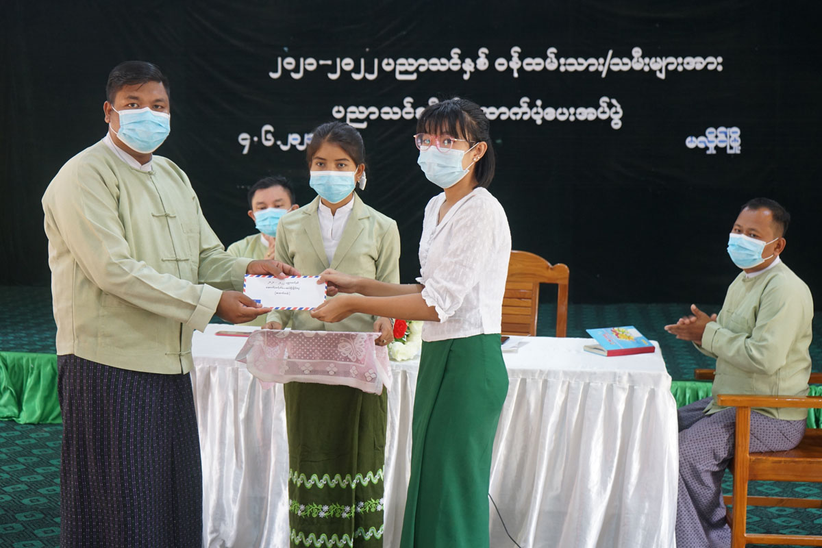 အဆိုပါနေ့က တက္ကသိုလ်အဆင့် ၁၅ဝဝဝိ နှုန်း၊ အထက်တန်းဆင့် ၁ဝဝဝဝိ နှုန်း၊ အလယ်တန်းဆင့် ၇ဝဝဝိ နှုန်း၊ မူလတန်းအဆင့် ၅ဝဝဝိ နှုန်း၊ KG တန်းအဆင့် ၃ဝဝဝိ နှုန်းဖြင့် စုစုပေါင်း ကျောင်းသား၊ ကျောင်းသူ(၄၃) ဦးအတွက် ငွေကျပ် ၃၂၄ဝဝဝိ ကို ထောက်ပံ့ခဲ့ကြောင်း သိရသည်။