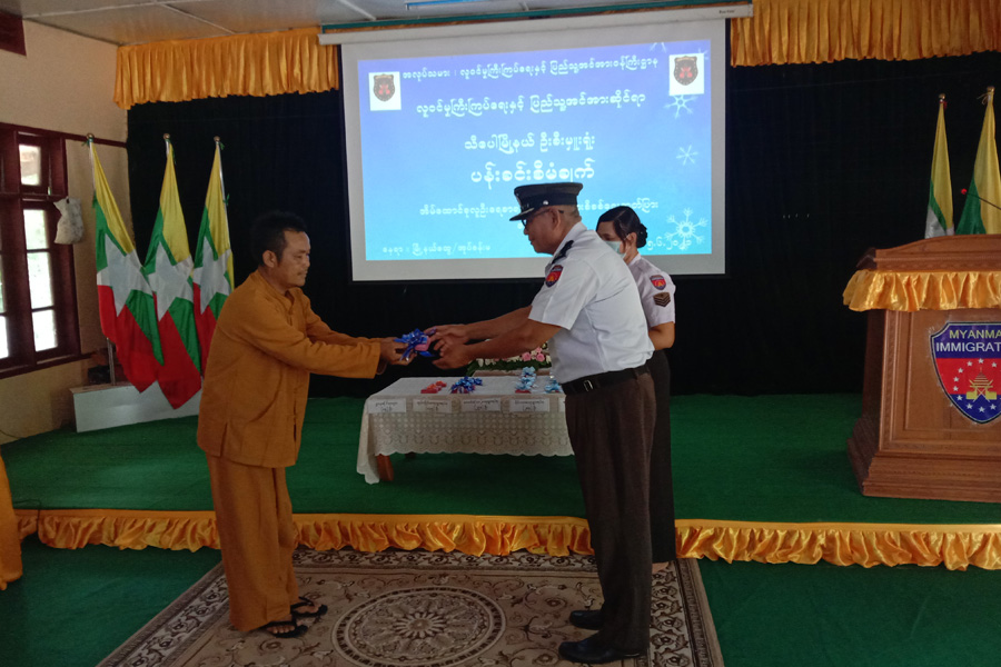 ထို့နောက် ကျေးရွာအုပ်စု အုပ်ချုပ်ရေးမှူးတစ်ဦးက ကျေးဇူးတင်စကား ပြန်လည်ပြောကြားခဲ့ကာ မြို့နယ် စီမံအုပ်ချုပ်ရေး အဖွဲ့ဥက္ကဋ္ဌနှင့် တာဝန်ရှိသူများက နိုင်ငံသားစိစစ်ရေး ကတ်ပြားများကို ပြည်သူများထံသို့ ပေးအပ်ခဲ့ကြသည်။