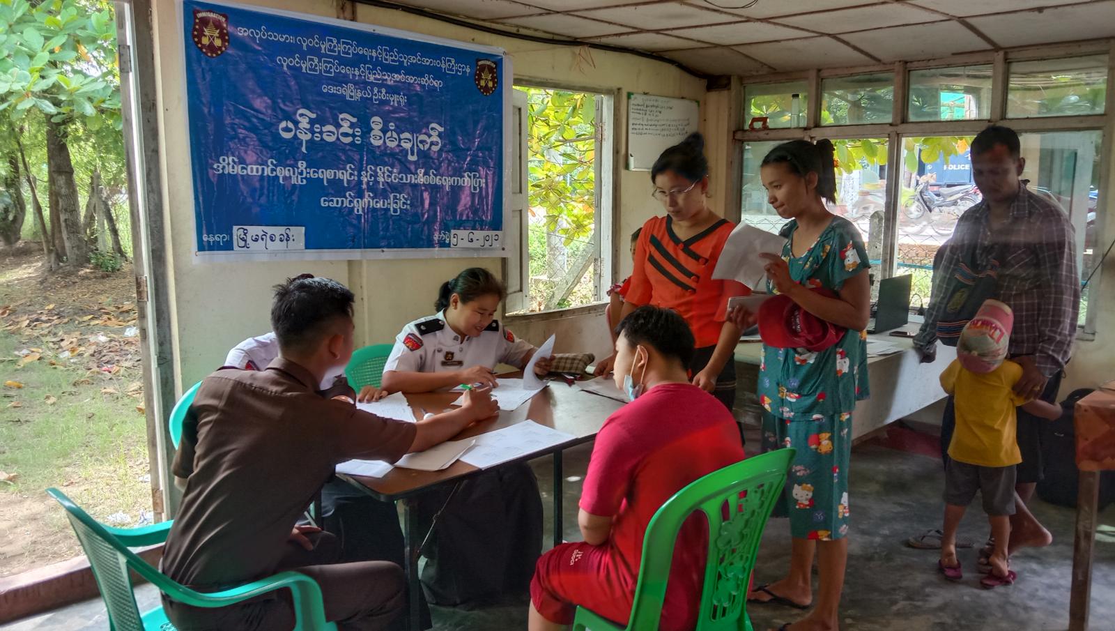 ထိုသို့ဆောင်ရွက်ပေးရာတွင် အလုပ်သမား လူဝင်မှုကြီးကြပ်ရေးနှင့်ပြည်သူ့အင်အားဆိုင်ရာ ဦးစီးဌာနမှ ဒုတိယလဝကမှူး ဒေါ်သဲစုခိုင် ခေါင်းဆောင်သောအဖွဲ့မှ မြို့နယ်ရဲတပ်ဖွဲ့နှင့် ကျေးရွာစခန်းများ အတွင်းနေထိုင်ကြသည့် နိုင်ငံသားစိစစ်ရေး ကတ်ပြားမရှိသူ အမျိုးသား (၅)ဦး၊ အမျိုးသမီး(၃)ဦး၊ စုစုပေါင်း(၈)ဦးတို့ကို နိုင်ငံသားစိစစ်ရေးကတ်ပြားများ ဆောင်ရွက်ပေးခဲ့သည်။