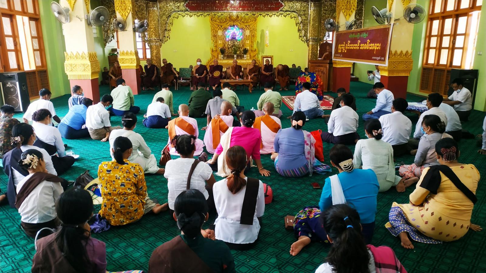 အောင်မြင်တော်မူသည့် မထမကြီးတန်း (၁၂) ပါး၊ ပထမလတ်တန်း (၆) ပါး၊ ပထမငယ်တန်း (၁၀) ပါး၊ အခြေခံမူလတန်း (၁၄) ပါး စုစုပေါင်း သံဃာတော်များနှင့် သီလရှင် (၄၂) ပါးတို့အား ခရိုင်စီမံအုပ်ချုပ်ရေးအဖွဲ့ ဥက္ကဋ္ဌနှင့်အဖွဲ့ဝင်းများ၊ မြို့နယ်စီမံအုပ်ချုပ်ရေးအဖွဲ့ဥက္ကဋ္ဌနှင့် အဖွဲ့ဝင်များ၊ ဌာနဆိုင်ရာအကြီးအကဲများနှင့် တာဝန်ရှိသူများက အောင်လက်မှတ်နှင့် ဝတ္ထုငွေတို့ကို အသီသီး ဆက်ကပ်လှုဒါန်းခဲ့ပြီး အခမ်းအနားကို ဗုဒ္ဓသာသနံစိရံတိဌတု သုံးကြိမ် ရွတ်ဆို ၍ အောင်မြင်စွာပြီးမြောက်ခဲ့ကြောင်း သိရသည်။