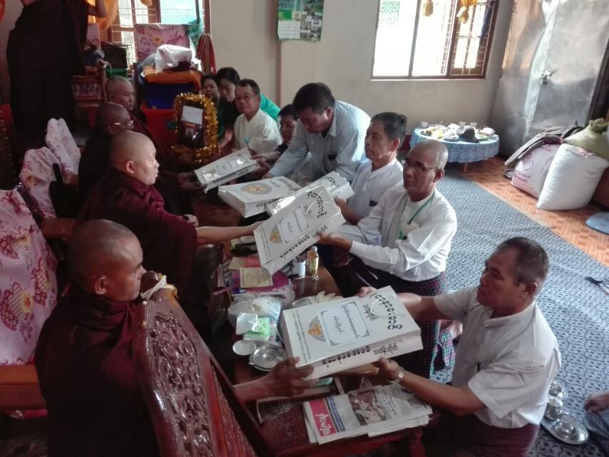 ရှေးဦးစွာ ကျောင်းတိုက်ပဓာနနာယက ဆရာတော်ဘဒ္ဒန္တဇဝနထံမှ သီလခံယူဆောက်တည်ကြပြီး သန်လျင်မြို့နယ် သတင်းစာ ဆရာ အသင်းနာယကများ၊ အသင်းဥက္ကဋ္ဌ ဦးကျော်ဝင်းနှင့် အဖွဲ့ဝင်များက ဆရာတော်ကြီးများအား ဝါဆိုသင်္ကန်းနှင့် လှူဖွယ် ပစ္စည်းများကို ဆက်ကပ်လှူဒါန်းကြသည်။ ထို့နောက် လှူဒါန်းမှုအစုစုအတွက် ဆရာတော်ထံမှ အနုမောဒနာ ရေစက်ချ တရားနားယူကြပြီး နေ့ဆွမ်းဆက်ကပ် လှူဒါန်းခဲ့ကြောင်း သိရသည်။