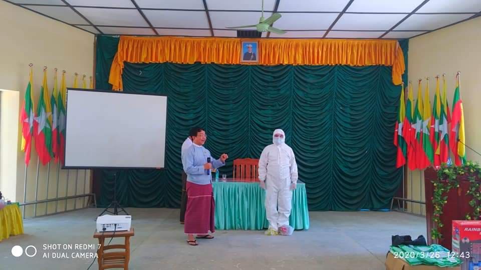 မွန်ပြည်နယ် ရေးမြို့နယ်တွင် မြို့နယ်အဆင့် ကိုရိုနာဗိုင်းရပ်(စ်)ရောဂါကာကွယ်ရေး၊ ထိန်းချုပ်ရေးနှင့် ကုသရေးလုပ်ငန်း ကော်မတီမှပြုလုပ်သော ကိုရိုနာဗိုင်းရပ်(စ်) ရောဂါအကြောင်း ဆွေးနွေးပွဲနှင့် ကာကွယ်ရေးဝတ်စုံ၊ ဆေးပစ္စည်းများ လက်တွေအသုံးပြုနိုင်ရေး သရုပ်ပြပွဲကို ယနေ့နံနက် ၁၀ နာရီက မြို့နယ်အထွေထွေအုပ်ချုပ်ရေး ဦးစီးဌာနရုံး အစည်းအဝေး ခန်းမ၌ ပြုလုပ်ခဲ့သည်။