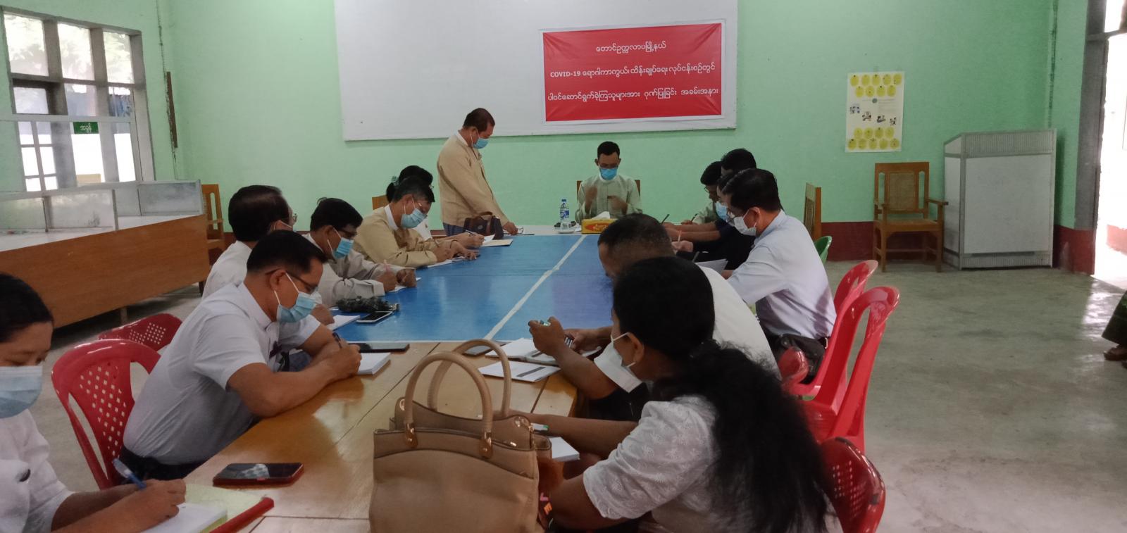 အစည်းအဝေးတွင် မြို့နယ်အုပ်ချုပ်ရေးမှူး ဦးငြိမ်းချမ်းအောင်၊ မြို့နယ်အဆင့်ဌာနဆိုင်ရာ တာဝန်ရှိသူများ၊ မြို့နယ် ရွေးကောက်ပွဲ ကော်မရှင်အဖွဲ့ခွဲ ဥက္ကဋ္ဌ ဦးမိုးဝင်းအောင်နှင့် အဖွဲ့ဝင်များ တက်ရောက်ခဲ့ကြသည်။ ရှေးဦးစွာ မြို့နယ် အုပ်ချုပ်ရေးမှူး ဦးငြိမ်းချမ်းအောင်က အဖွင့်အမှာစကား ပြောကြားပြီး မြို့နယ်ရွေးကောက်ပွဲကော်မရှင်အဖွဲ့ခွဲဥက္ကဋ္ဌ ဦးမိုးဝင်းအောင်က ရွေးကောက်ပွဲကျင်းပရေးဆိုင်ရာ လုပ်ငန်းစဉ်များကို ရှင်းလင်း ဆွေးနွေးခဲ့သည်။ ဆက်လက်ပြီး တက်ရောက်လာသော ဌာနဆိုင်ရာ တာဝန်ရှိသူများနှင့် မြို့နယ် ရွေးကောက်ပွဲကော်မရှင်အဖွဲ့ခွဲ အဖွဲ့ဝင်များက ဆောင်ရွက် ထားရှိမှု အခြေအနေများအား အသီးသီးတင်ပြ ကြပြီး ဆက်လက်ဆောင်ရွက်ရမည့် လုပ်ငန်းစဉ်များကို ဆွေးနွေးခဲ့ကြသည်။